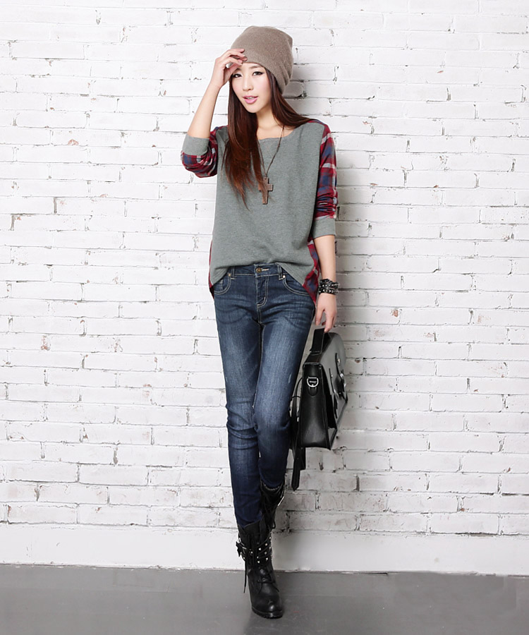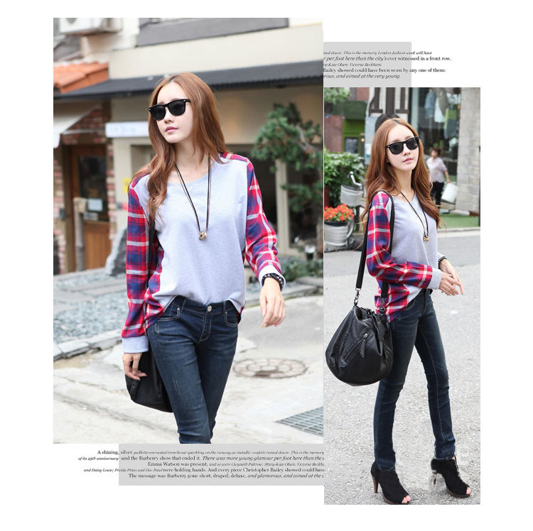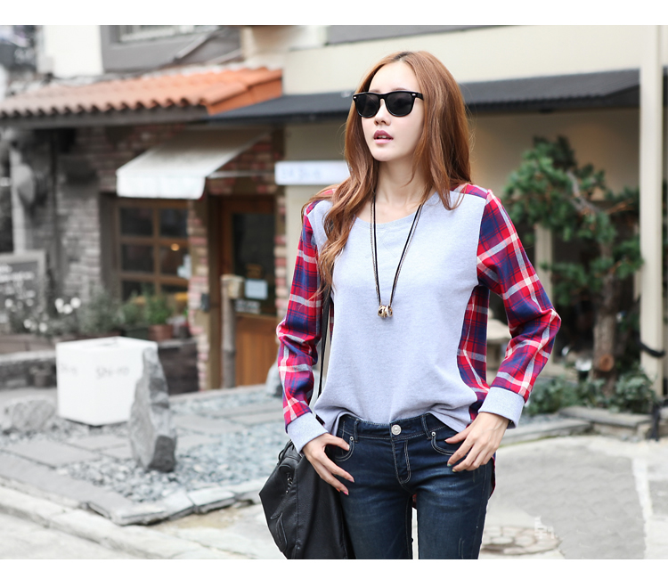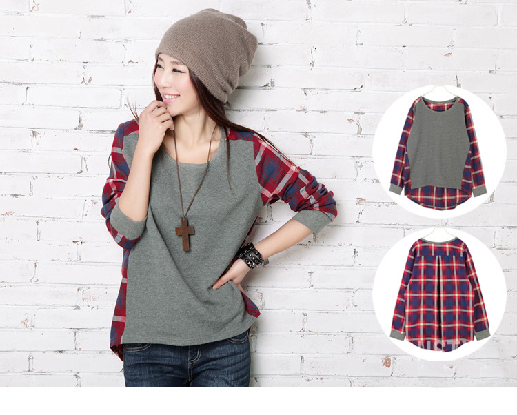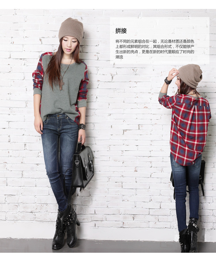 5022#孕妇装韩国2013春秋街头拼接圆领宽松长袖T恤孕妇T恤