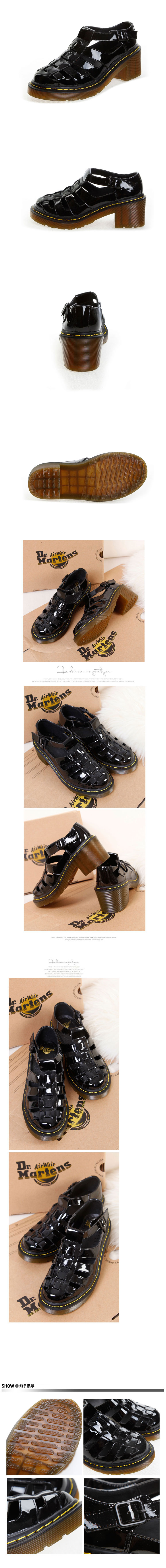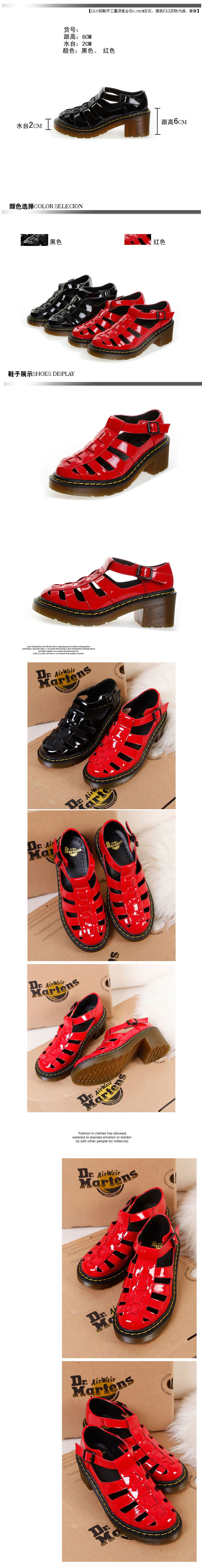 2014欧洲站马丁凉鞋 穿插编织式漆皮粗跟鞋 缕空马丁洞洞鞋