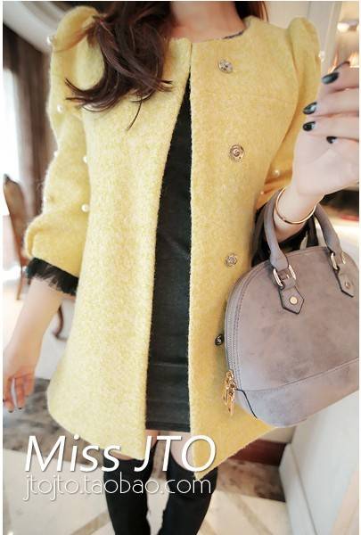 颗颗大珍珠点缀在袖子上,个性 时尚 很好看百搭的一款呢外套 喜欢的亲不要错过了