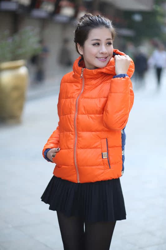 8913# 最新时尚韩版牛仔拼接绣花羽绒棉保暖羽绒服
