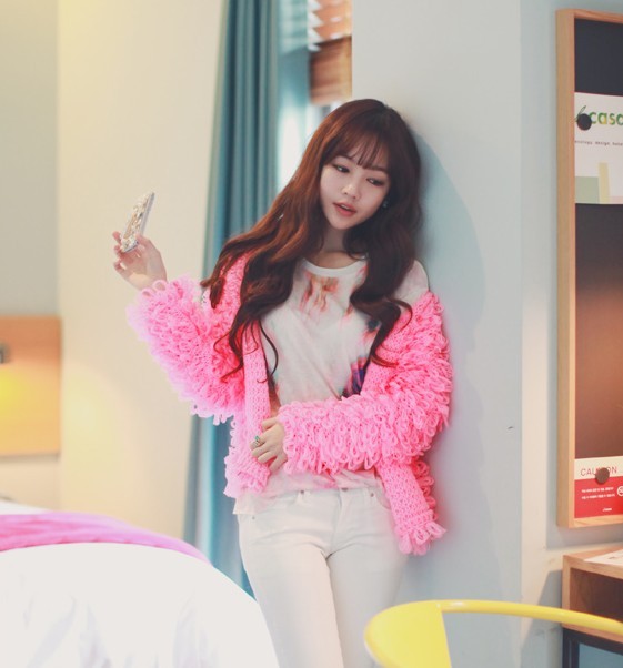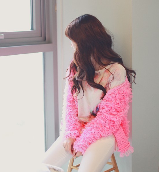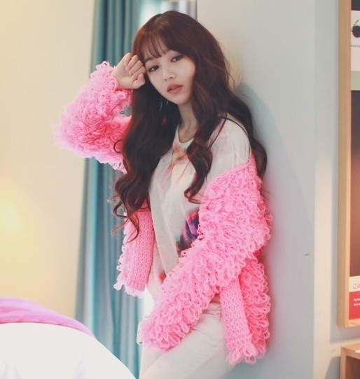 韩国东大门2014秋冬装圈圈毛手工编织加厚短款毛衣开衫6072