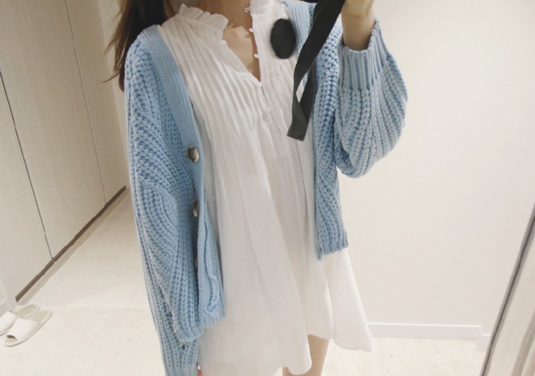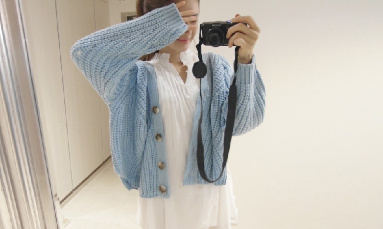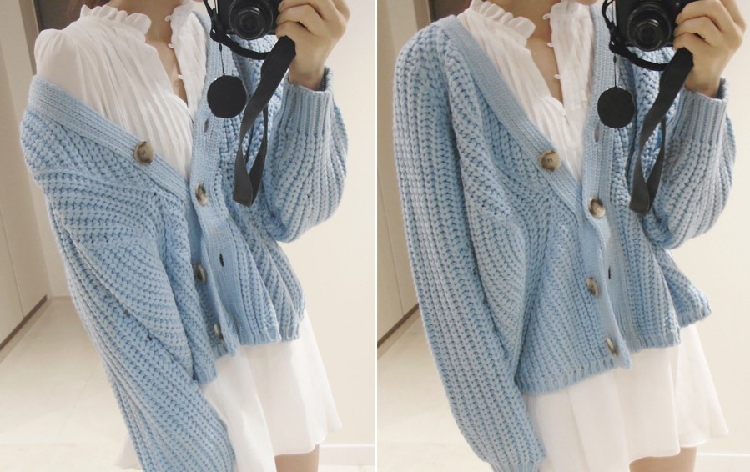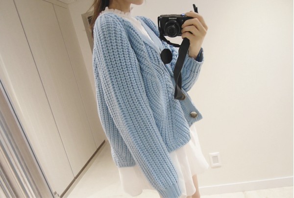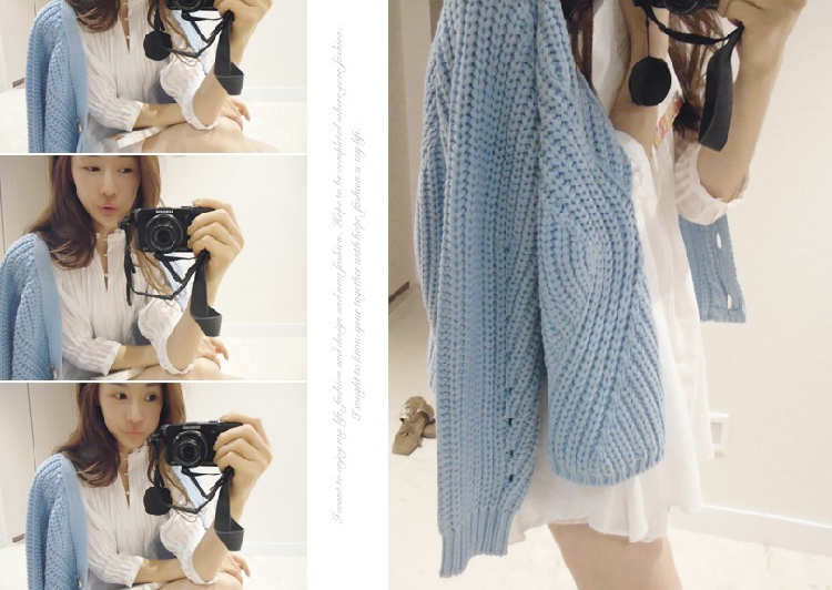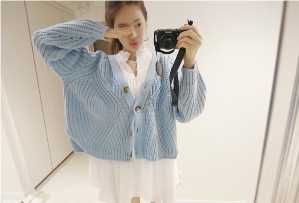 韩国东大门2014秋冬装粗针针织百搭宽松短款针织毛衣开衫6084