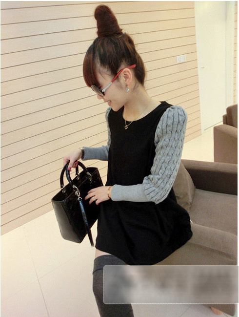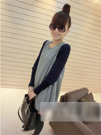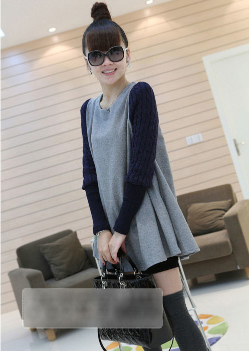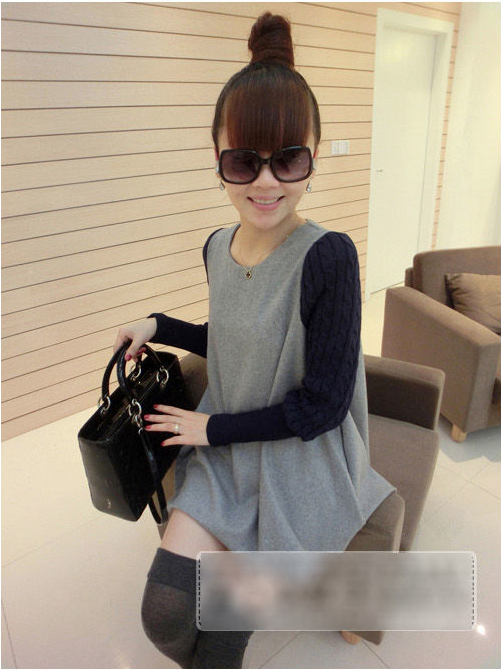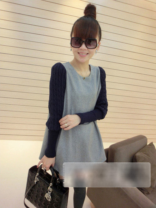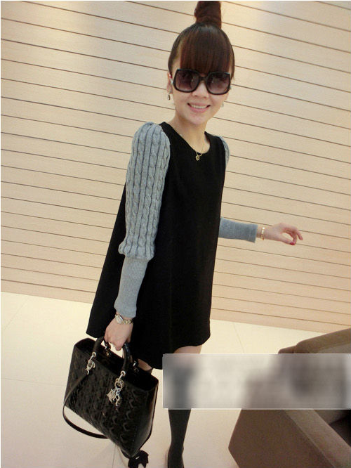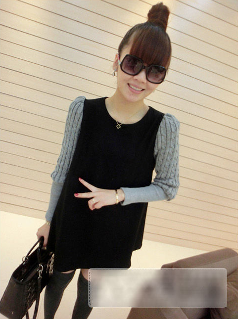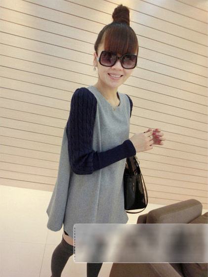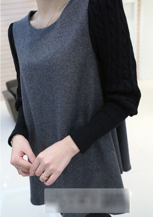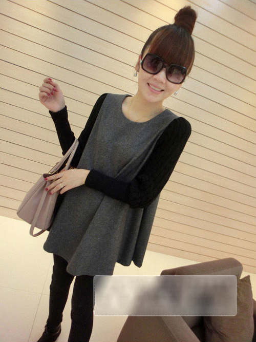 款韩版女装复古麻花娃娃衫罩衫长袖宽松气质毛呢外套 9023