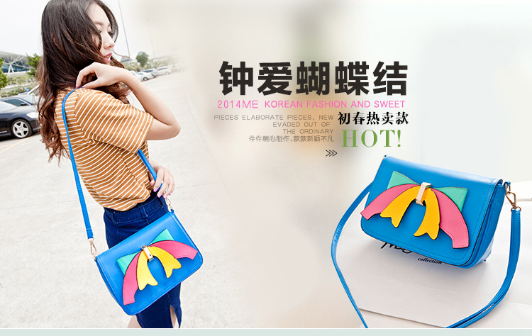 6889韩版新款时尚女包 甜美可爱蝴蝶结单肩斜挎小包糖果色包包