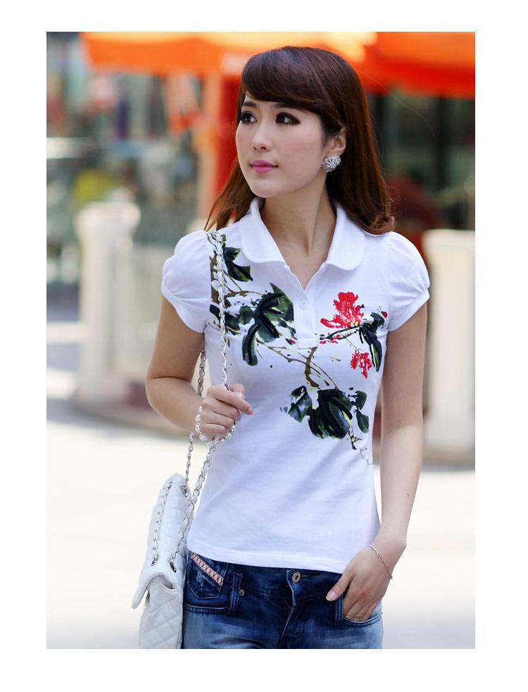 厂家直销 夏款珠地翻领印花T恤 泡泡袖修身短袖T恤 哪一支6136#