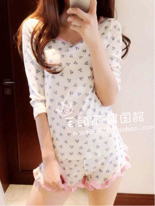 2014春夏装韩版新款干净纯美小花睡衣套装2625#