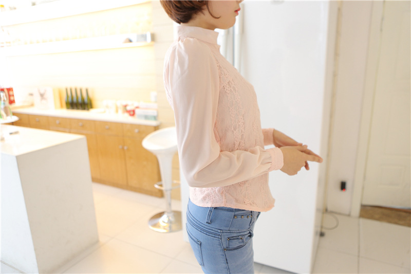 【品名/Trade name】 春装新款韩版气质立领长袖百搭雪纺打底衫衬衣