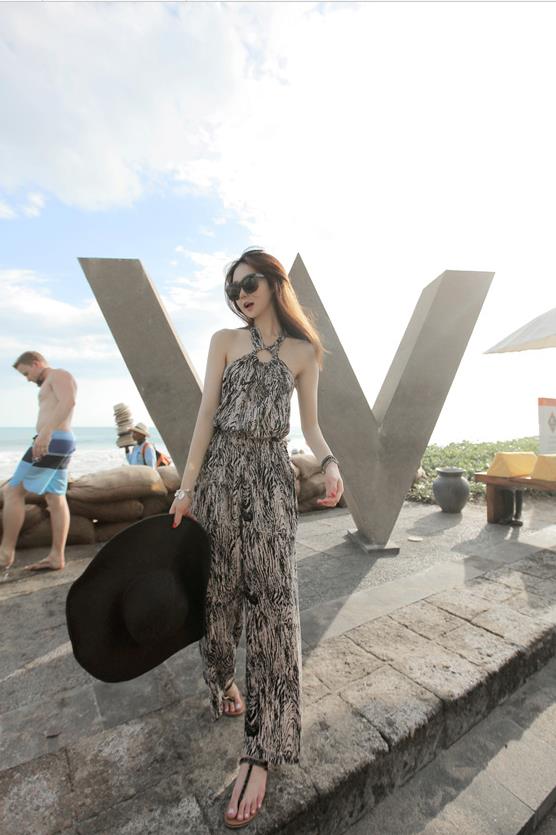 2014夏季新款沙滩连体裤 大码高腰挂脖吊带抹胸连体裤