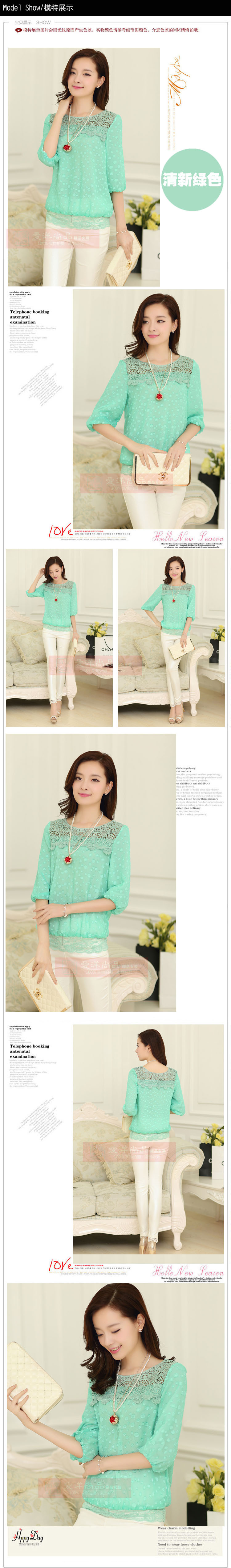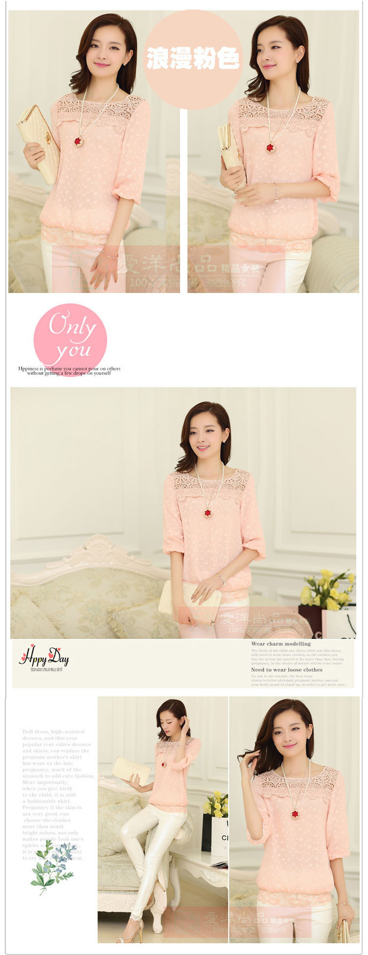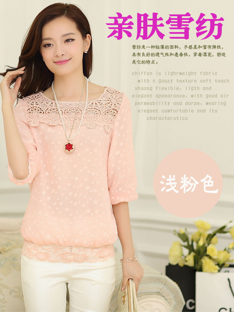 预售9390中袖打底衫 五分袖女雪纺衫 宽松上衣女大码蕾丝衫