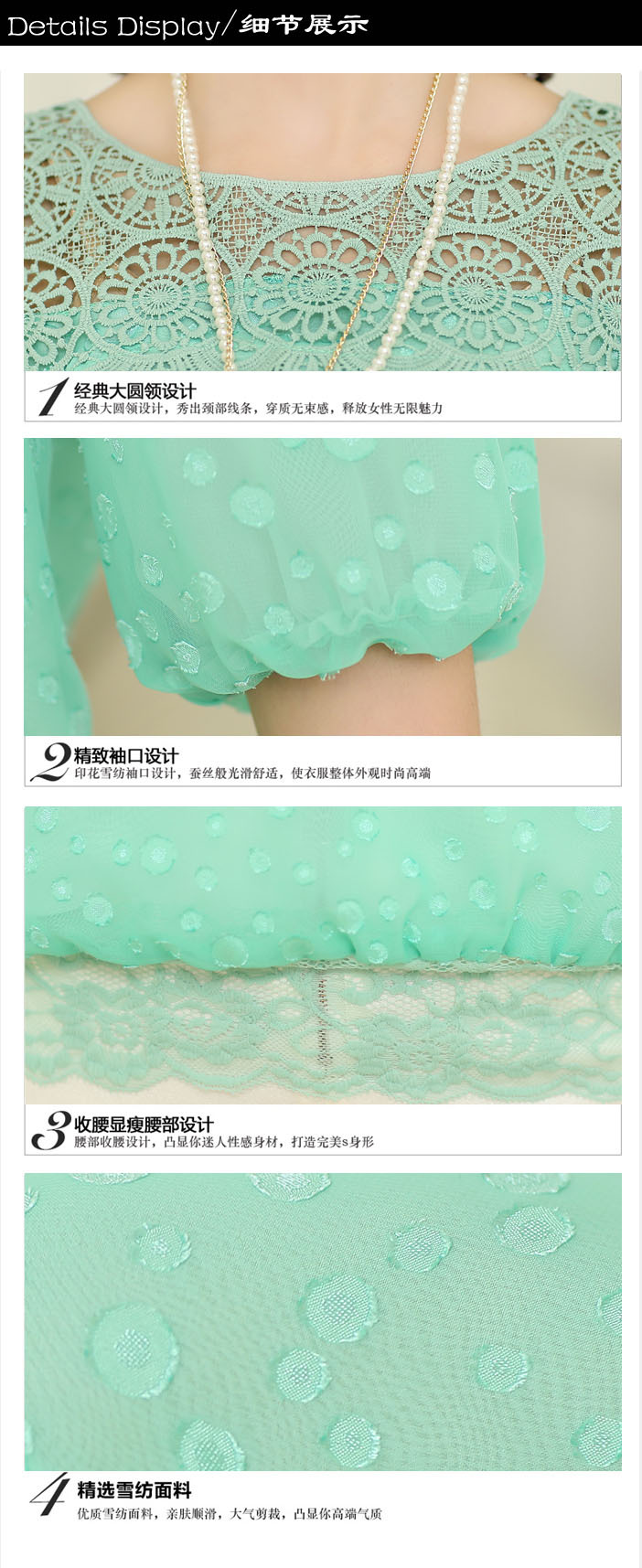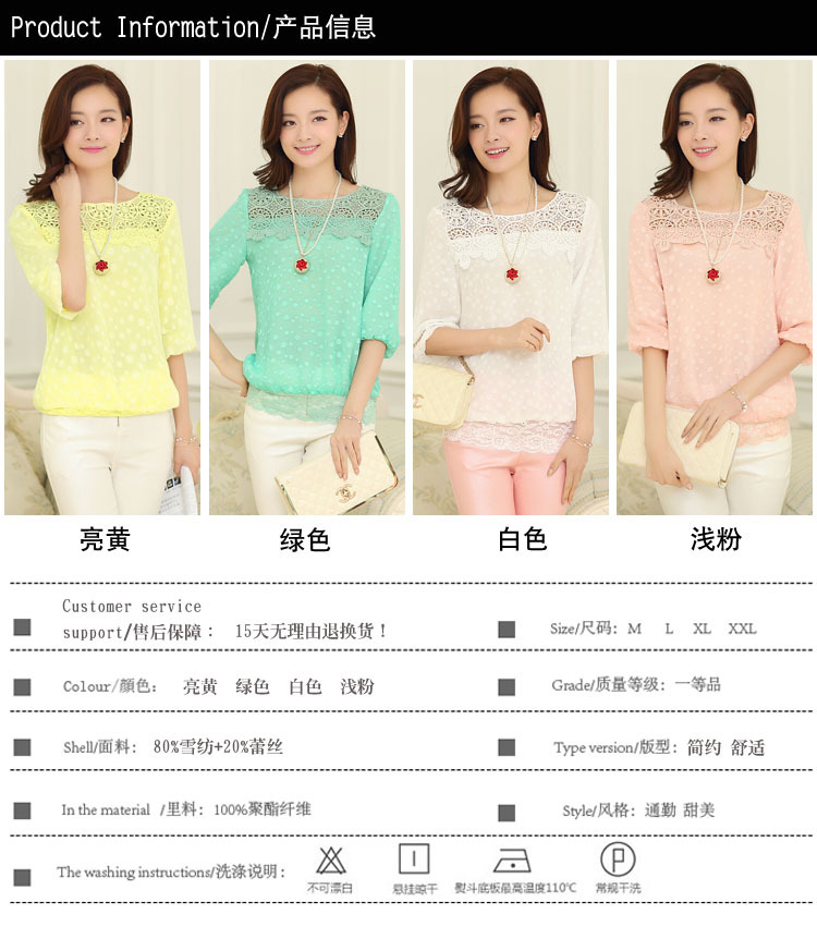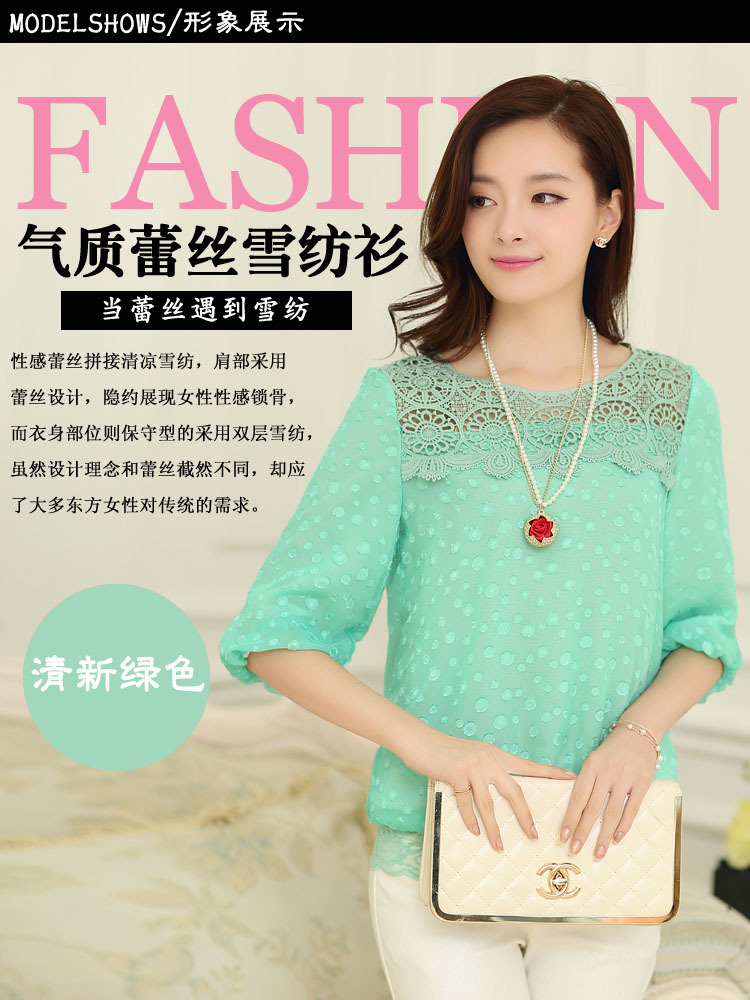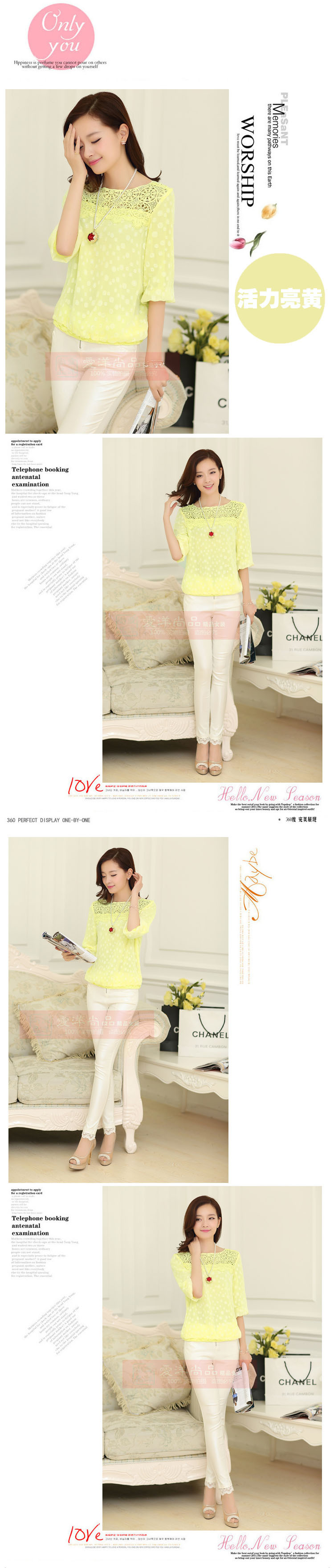 预售9390中袖打底衫 五分袖女雪纺衫 宽松上衣女大码蕾丝衫
