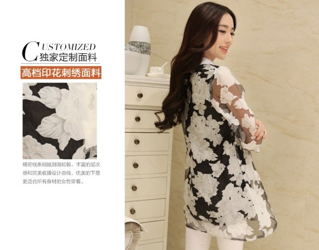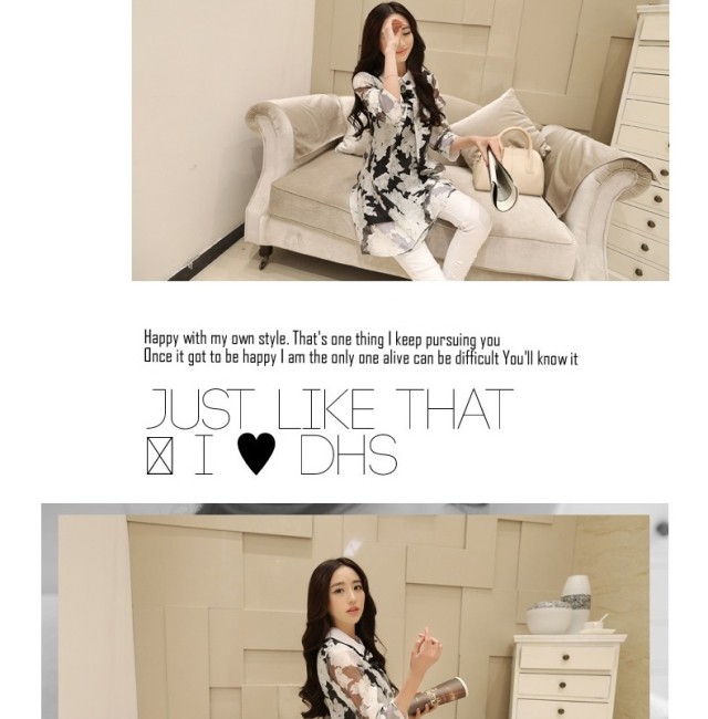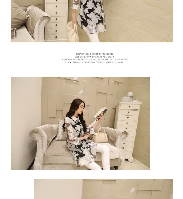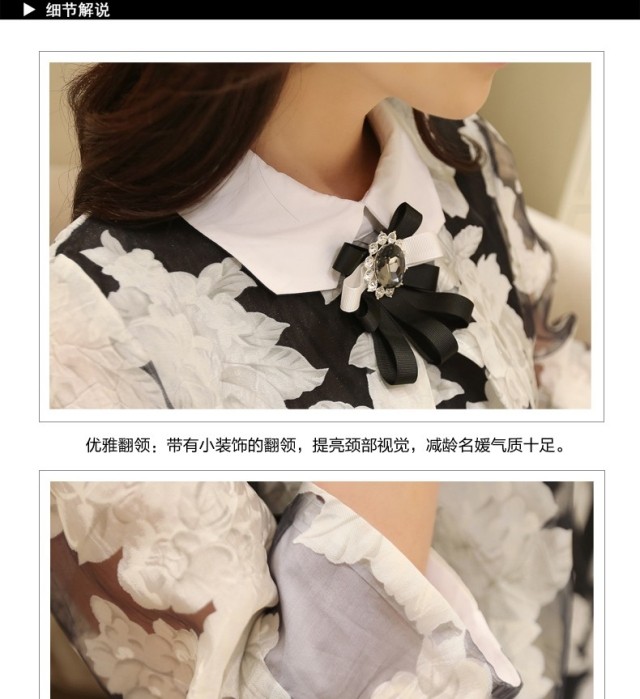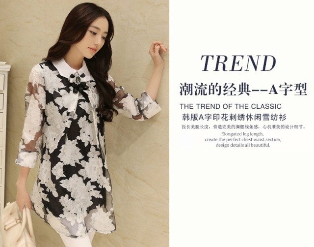 585#大量现货2014 早春衬衫女修身欧根纱七分袖大码女装雪纺