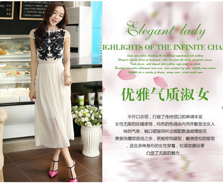 欧洲站2014新款女装雪纺大花边修身长款连衣裙
