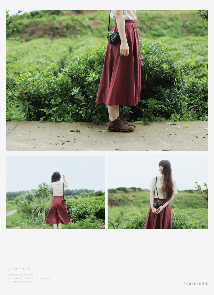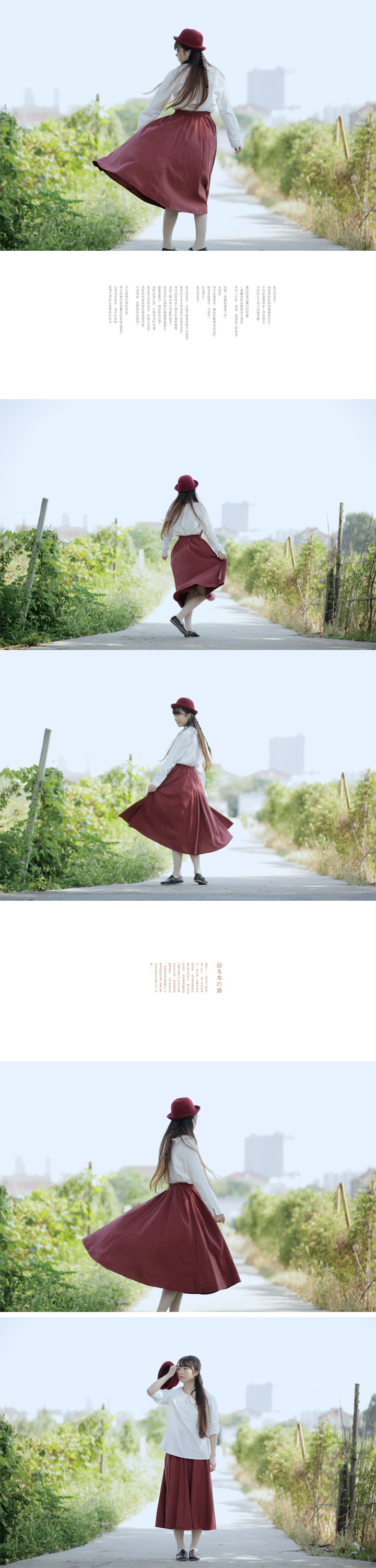 【品名】:2014春夏新款复古森女日系文艺范小清新大摆棉麻半身长裙子