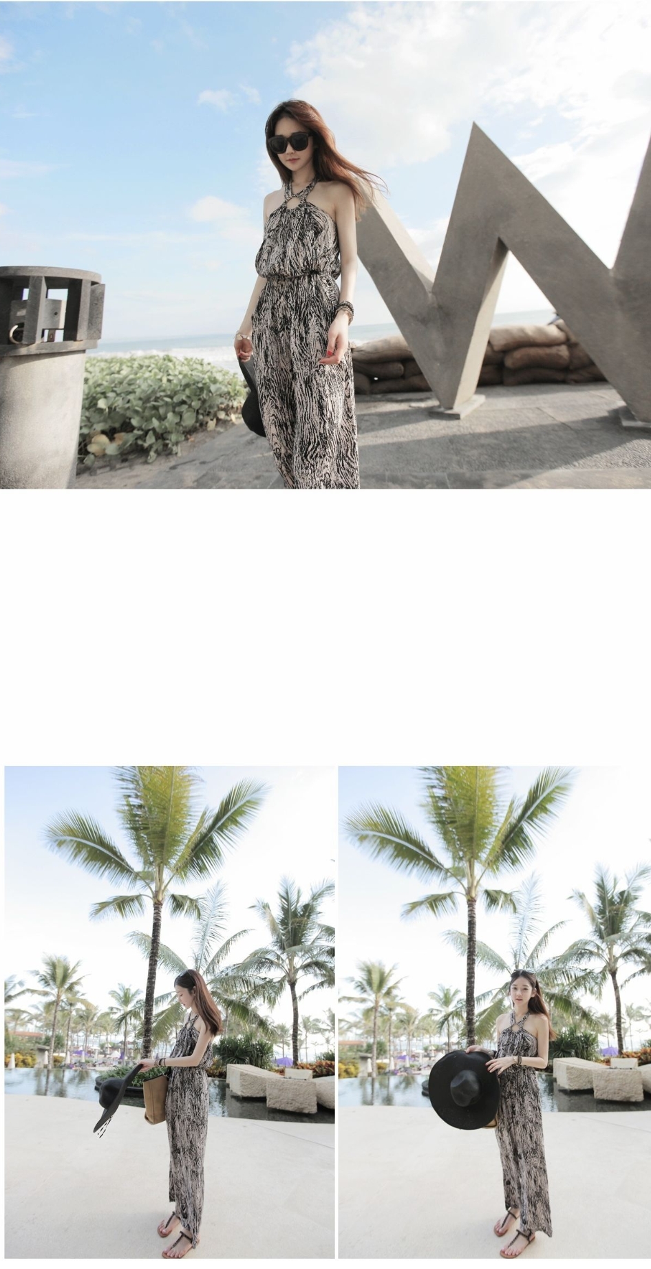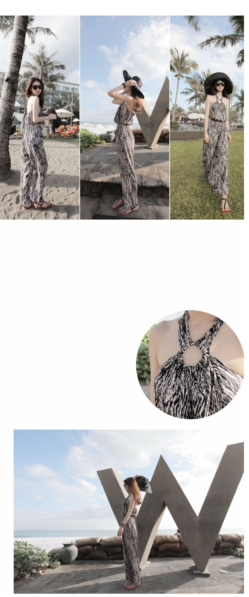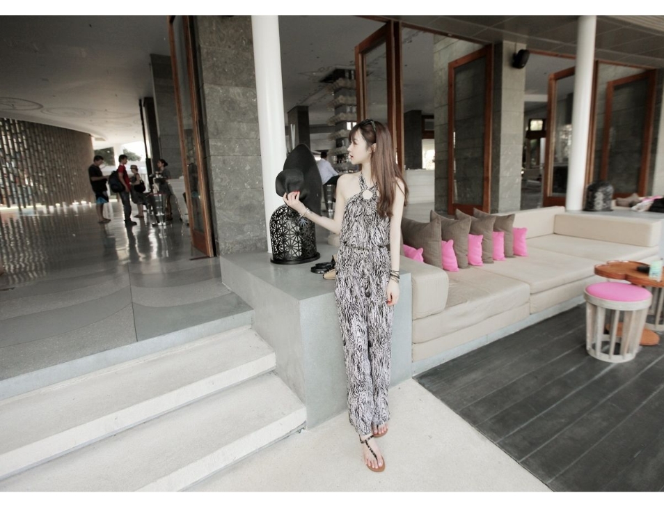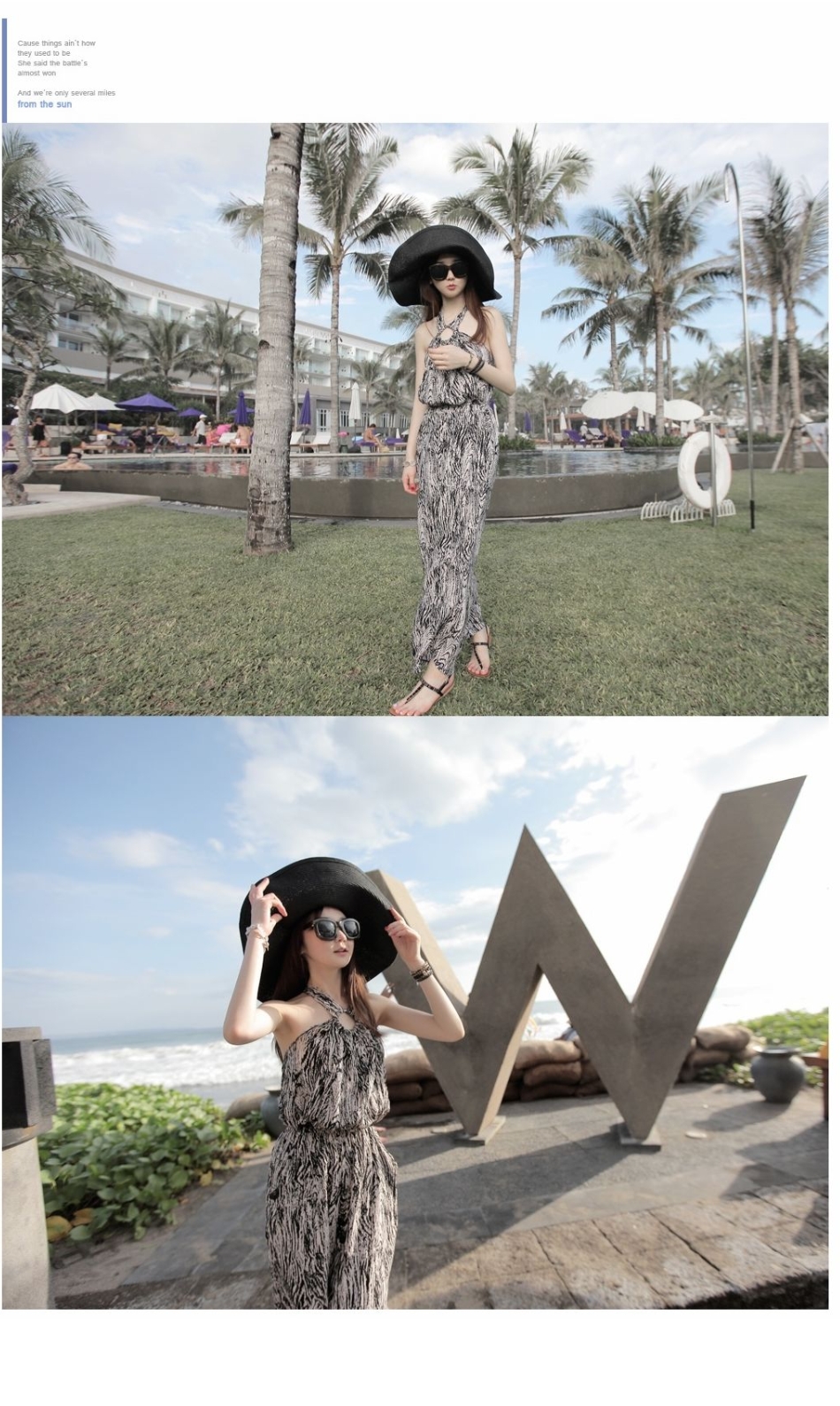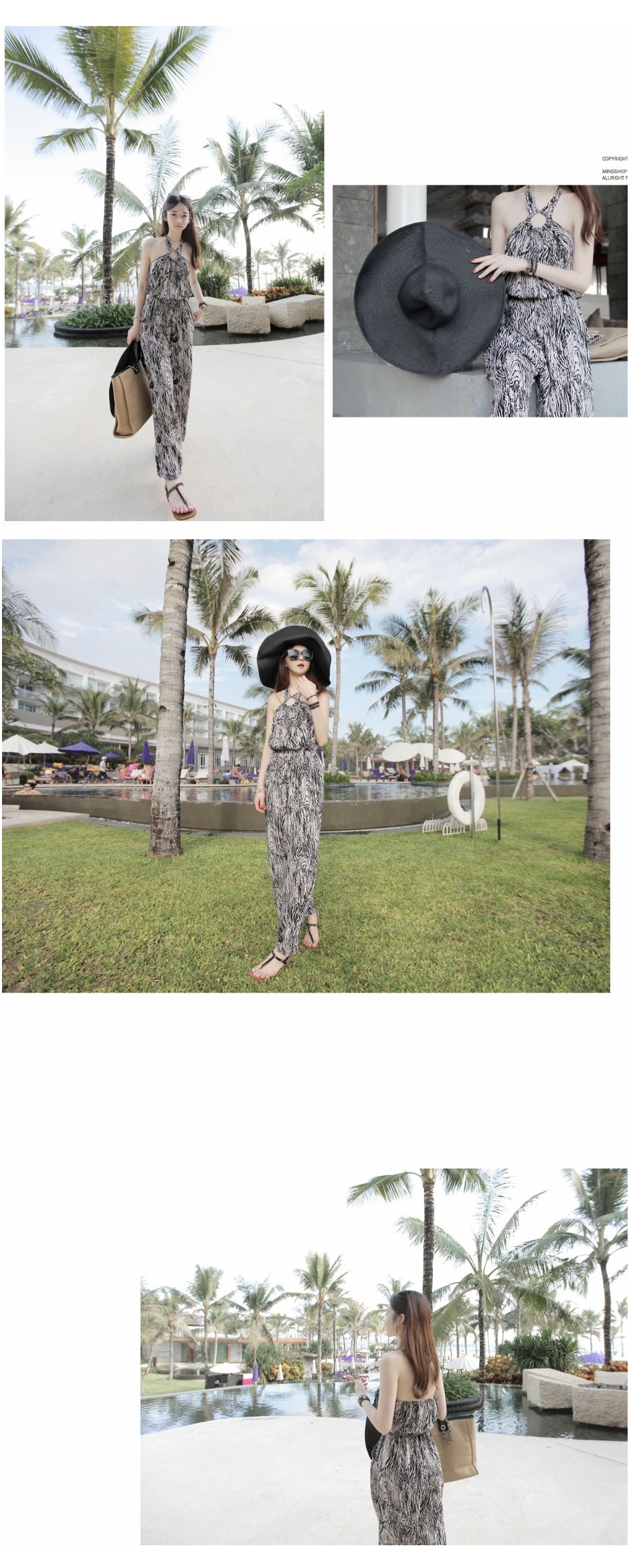 【品名】:2014春夏女装新品minsshop韩版挂脖豹纹性感露背连体裤