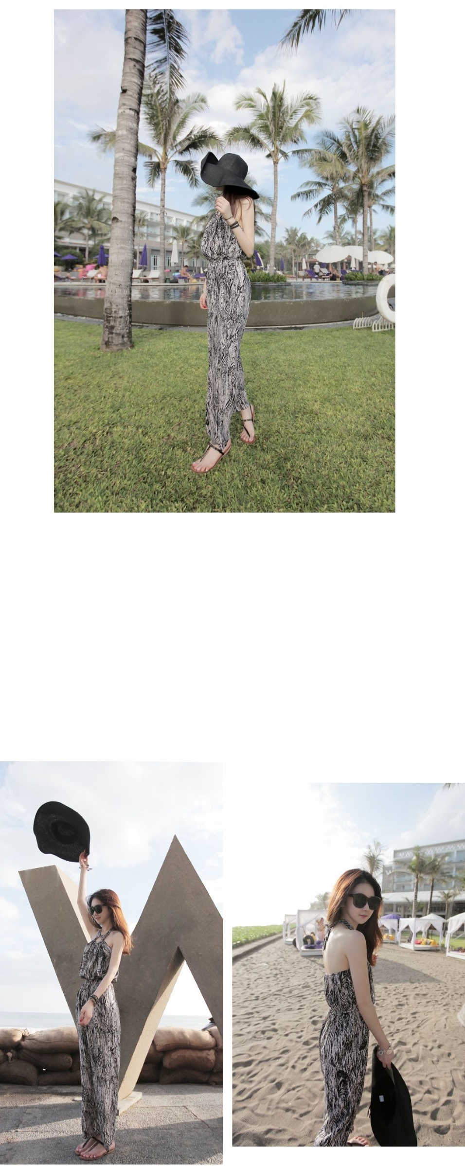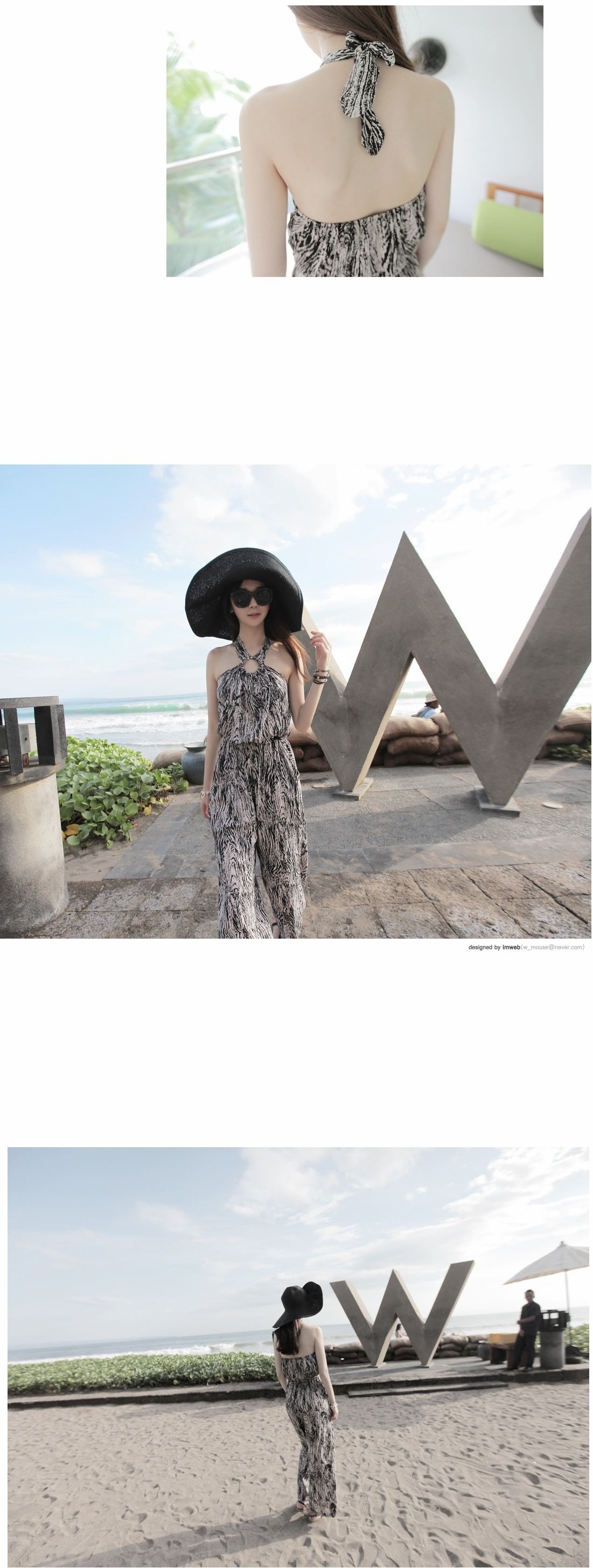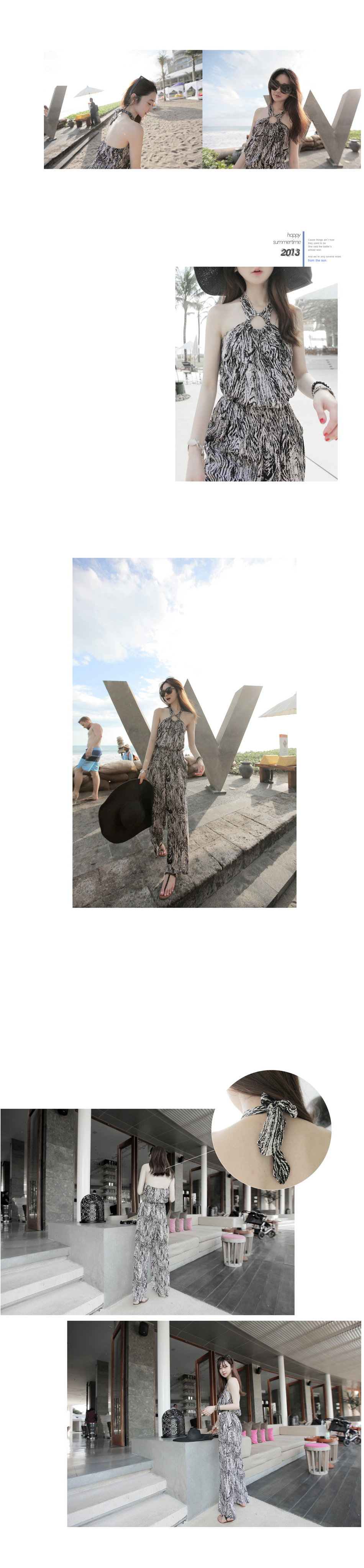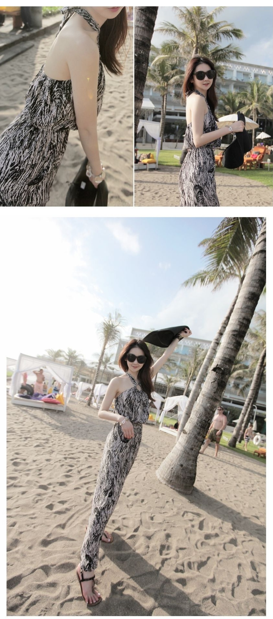 【品名】:2014春夏女装新品minsshop韩版挂脖豹纹性感露背连体裤