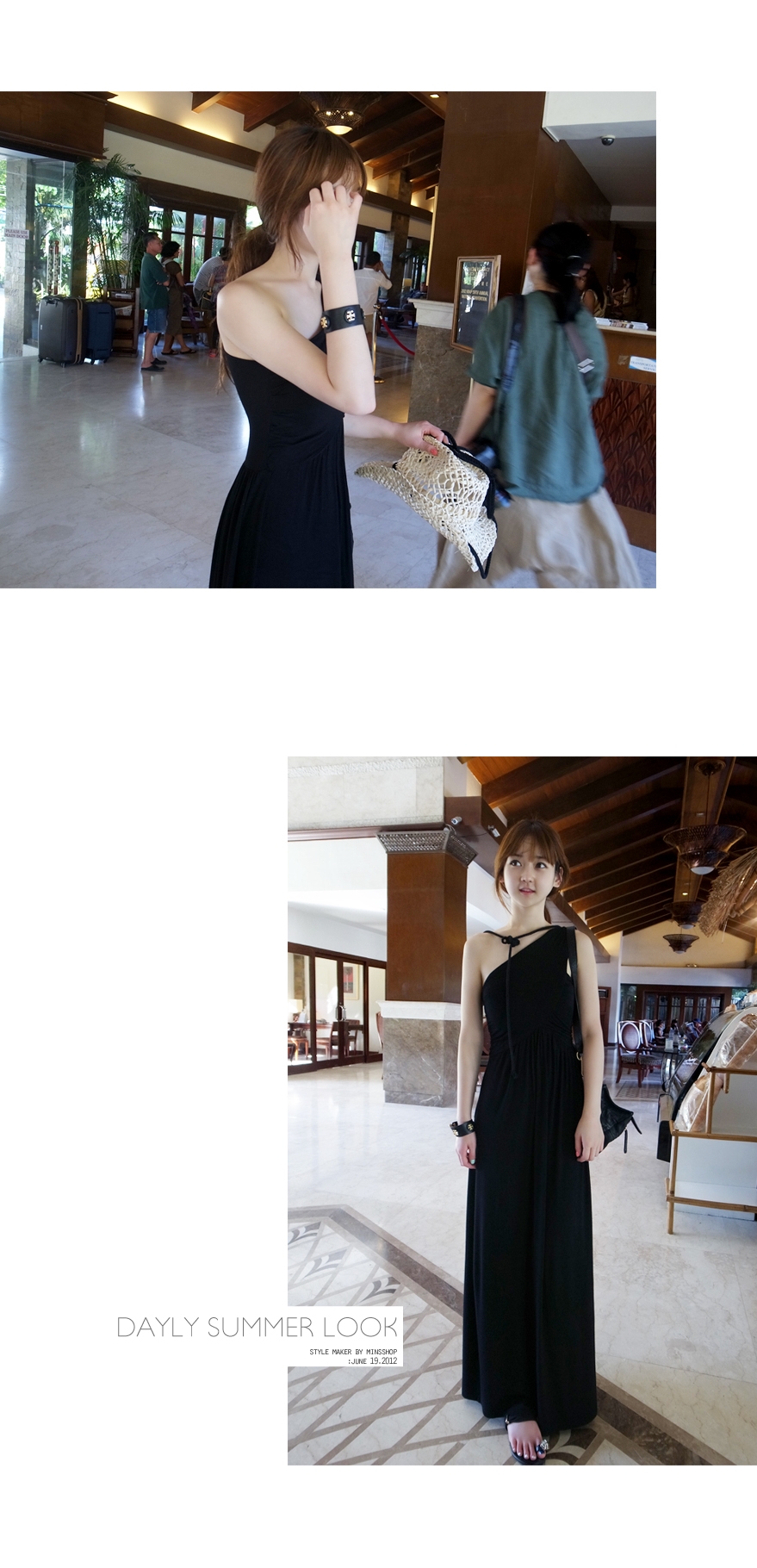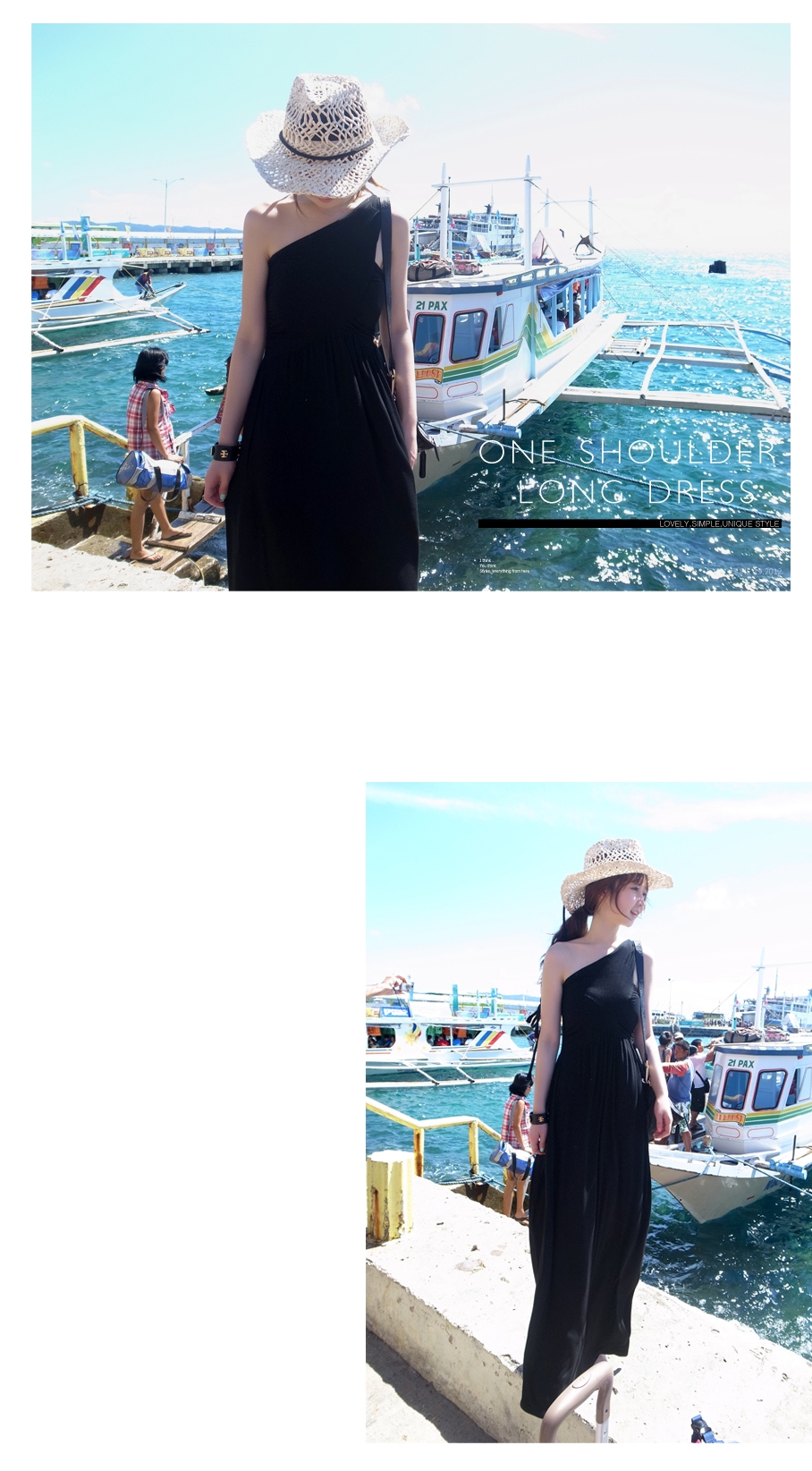 【品名】:欧美时尚 女神斜肩扭肩皱褶连衣裙波西米亚度假长裙