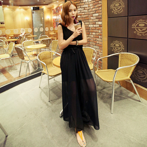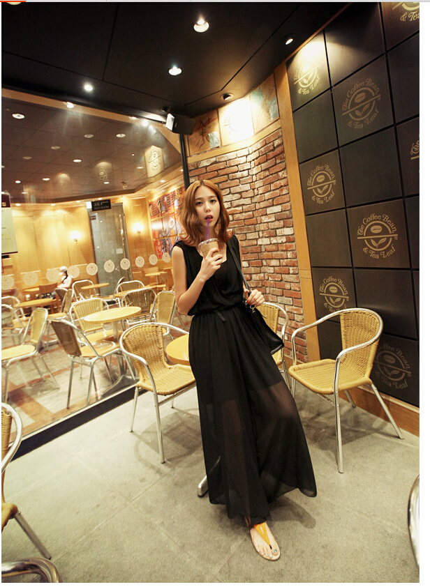 超级宽松的裤腿,整体看起来像连衣裙。
