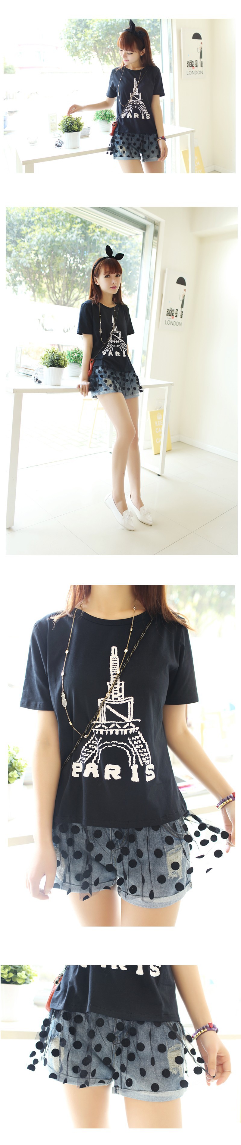 巴黎埃菲尔铁塔图案印花,甜美浪漫romantic风格