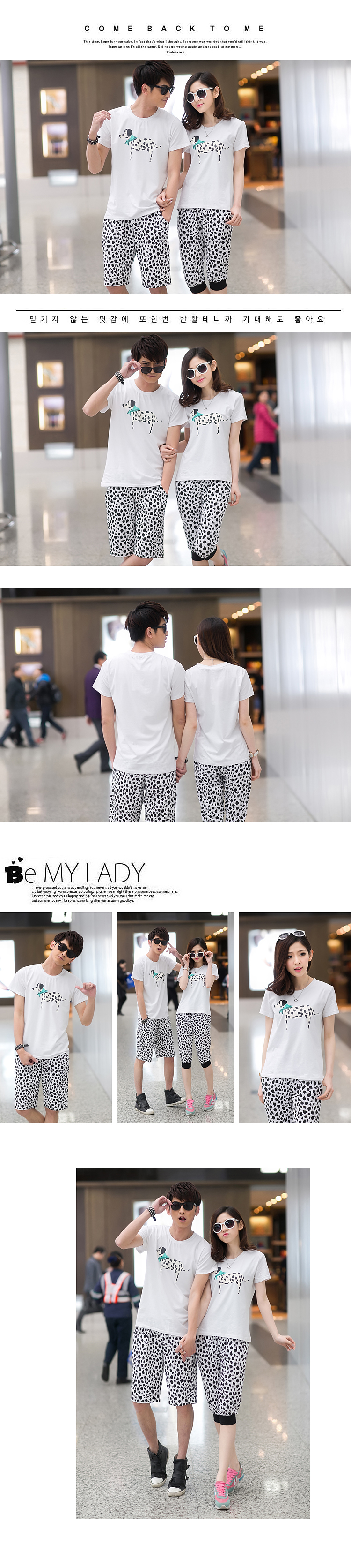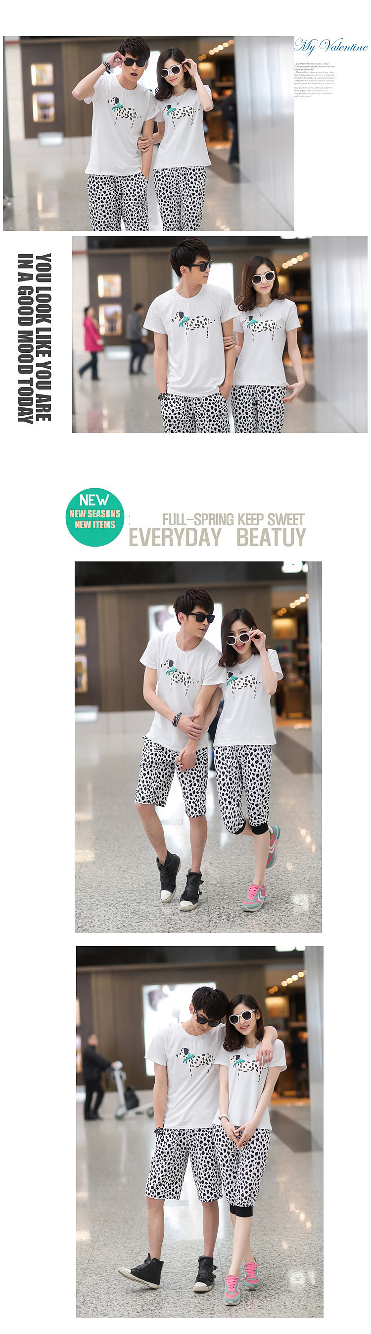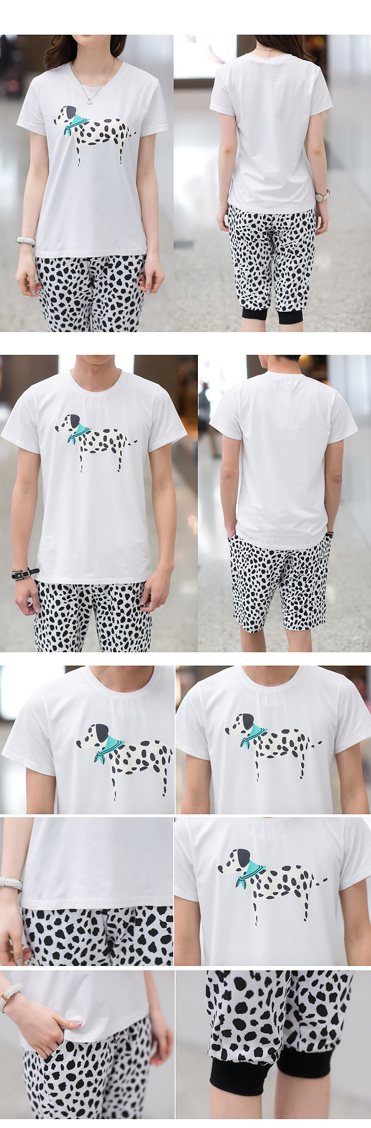 5203# 韩版新款 清新可爱小狗 豹点印花情侣套装