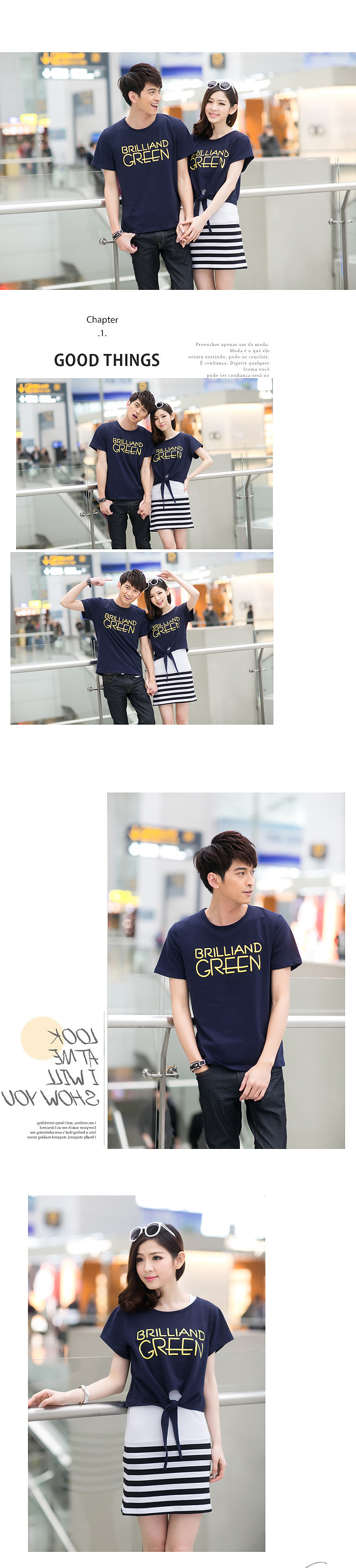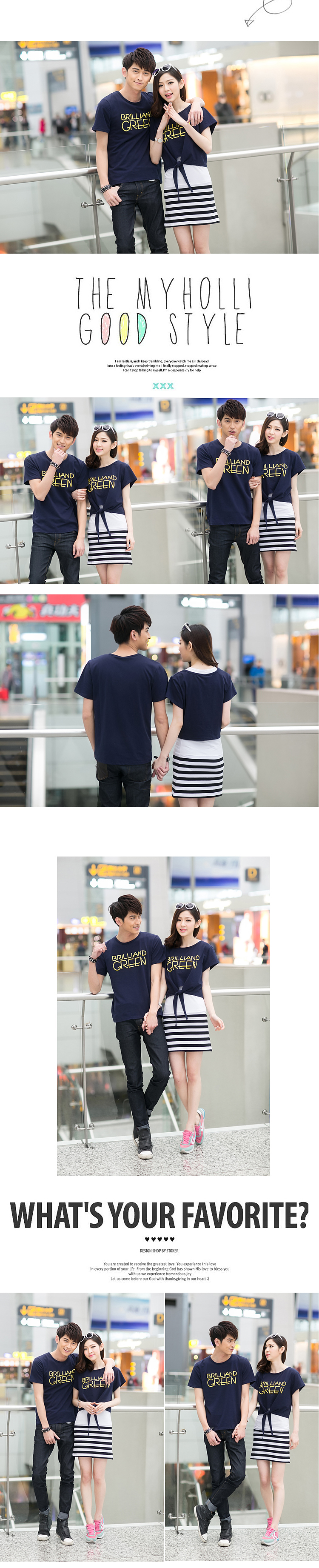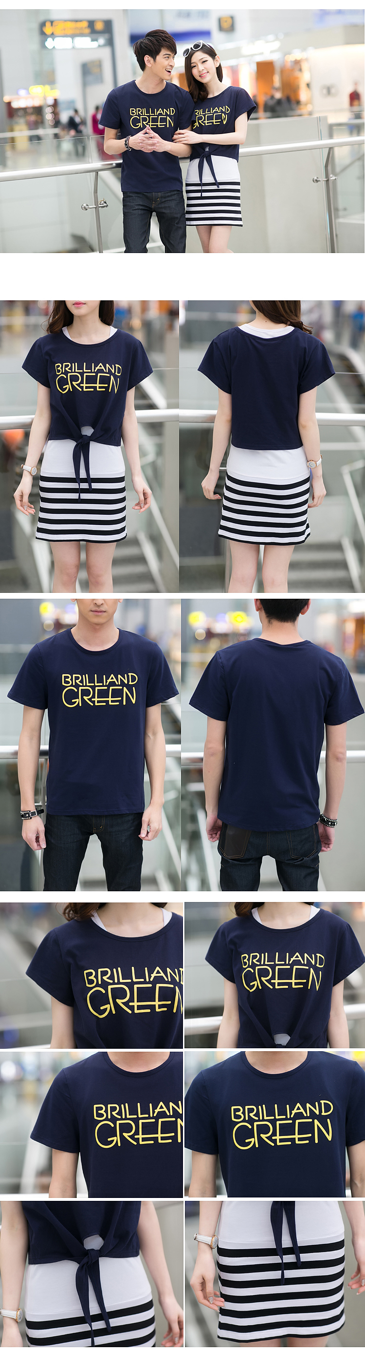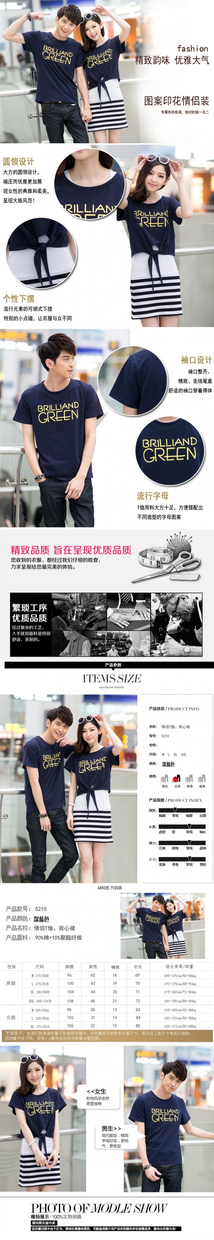 5210 沙滩情侣装夏 情侣短袖t恤裙子韩版连衣裙 二件套