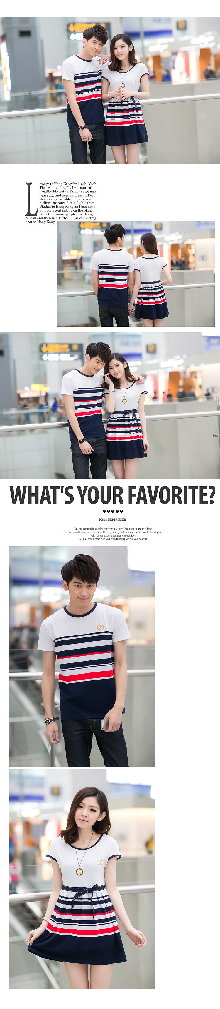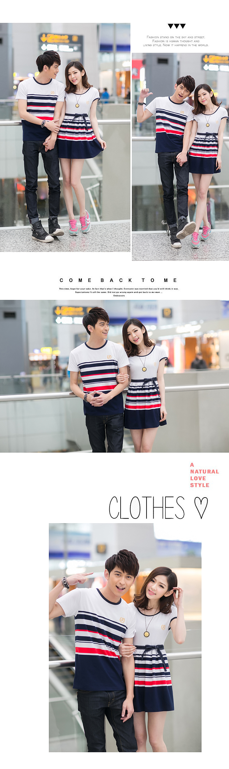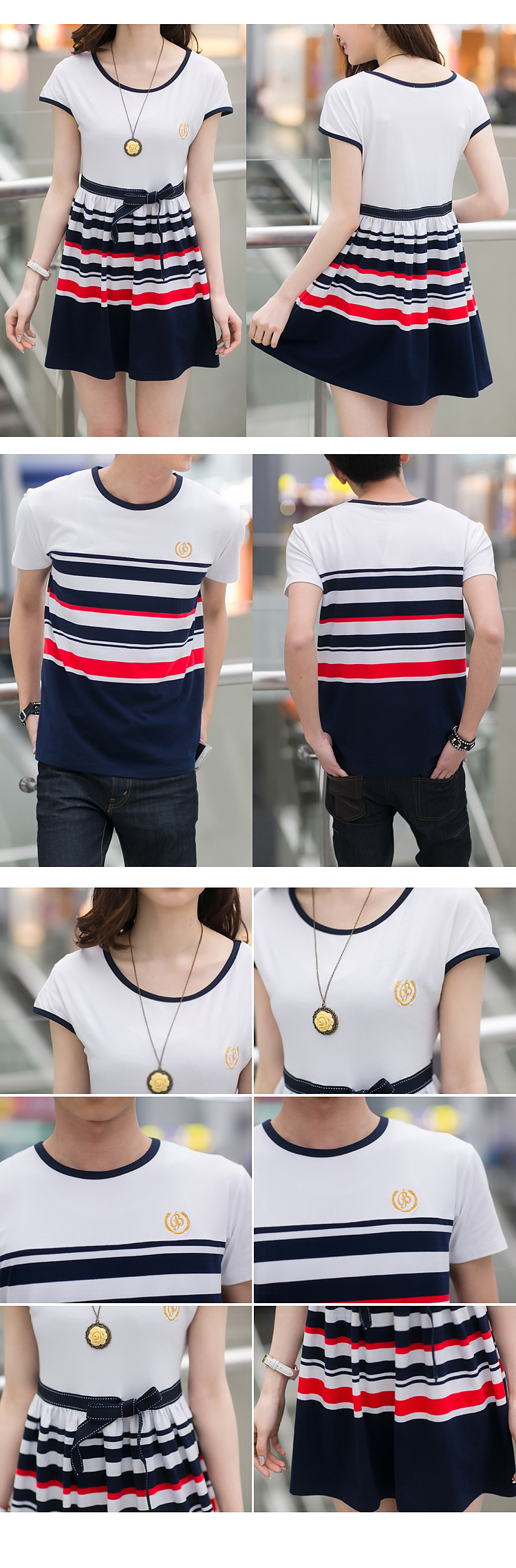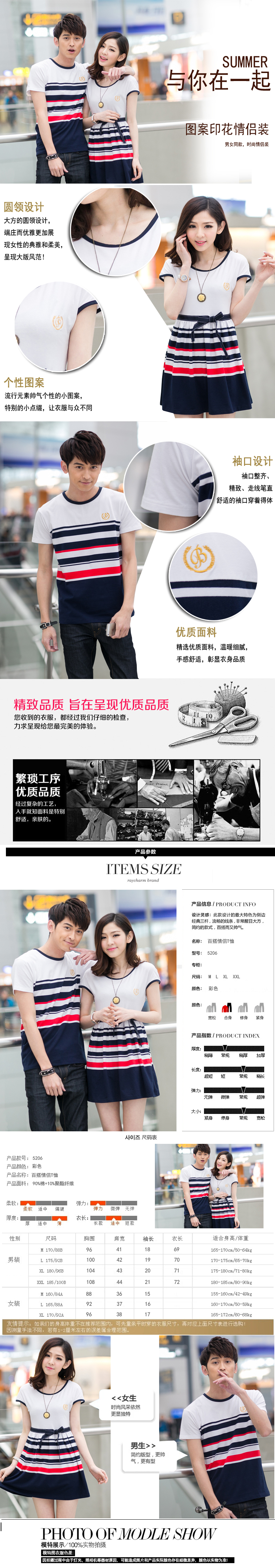5206 新款情侣夏装 海军风 T恤 沙滩裙 情侣装