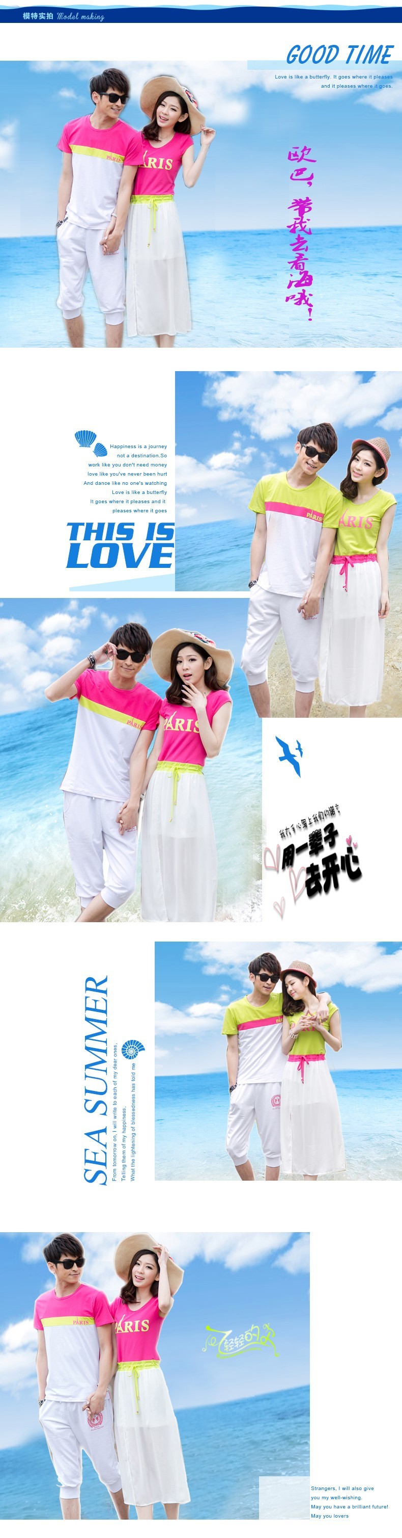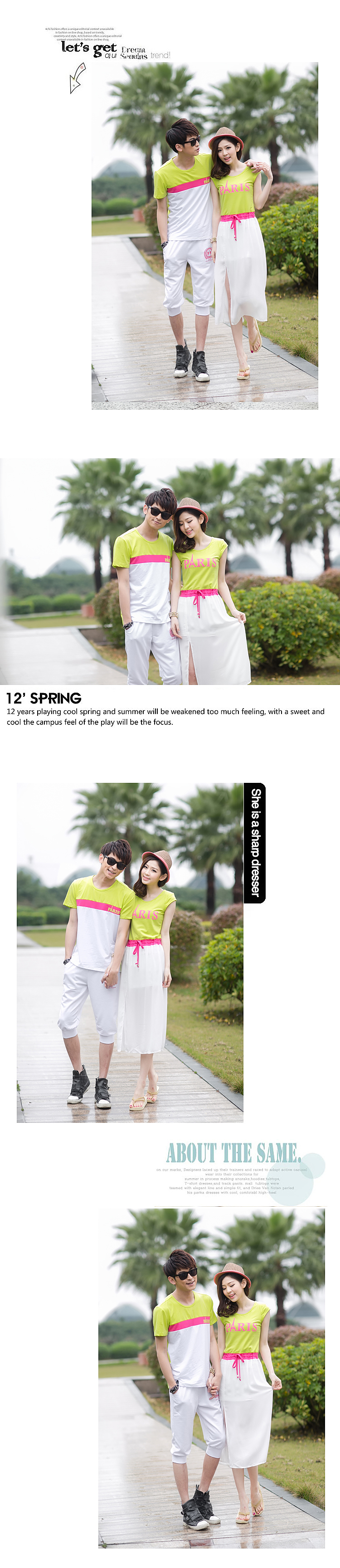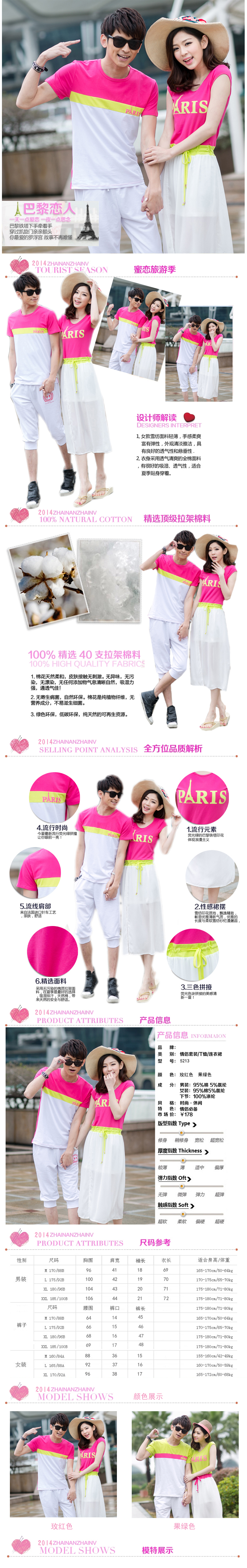 5213 情侣装 夏装新款韩版沙滩 情侣T恤 套装裙海边度假连衣裙