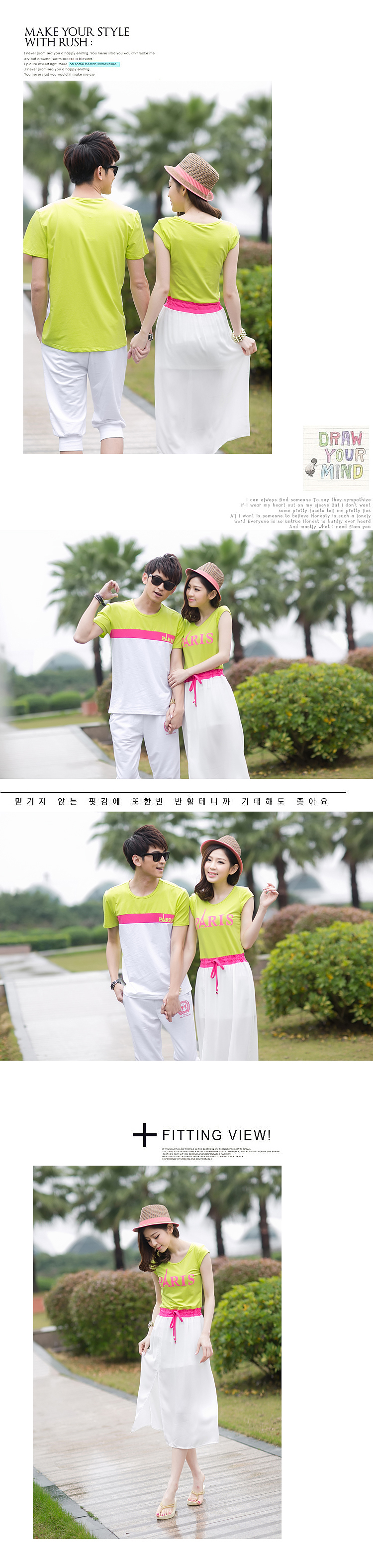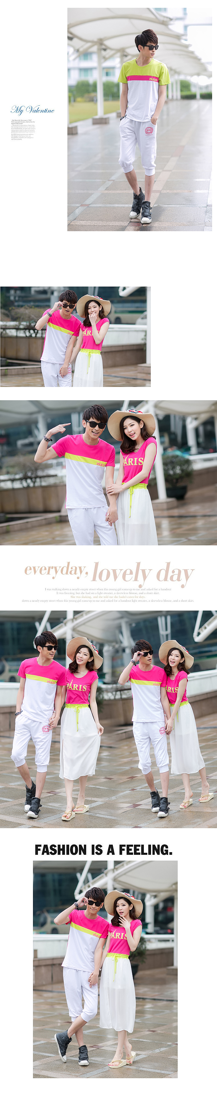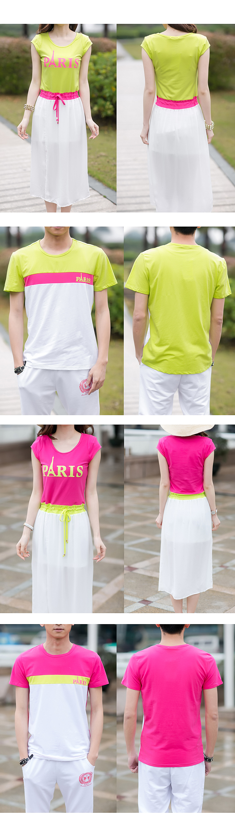5213 情侣装 夏装新款韩版沙滩 情侣T恤 套装裙海边度假连衣裙