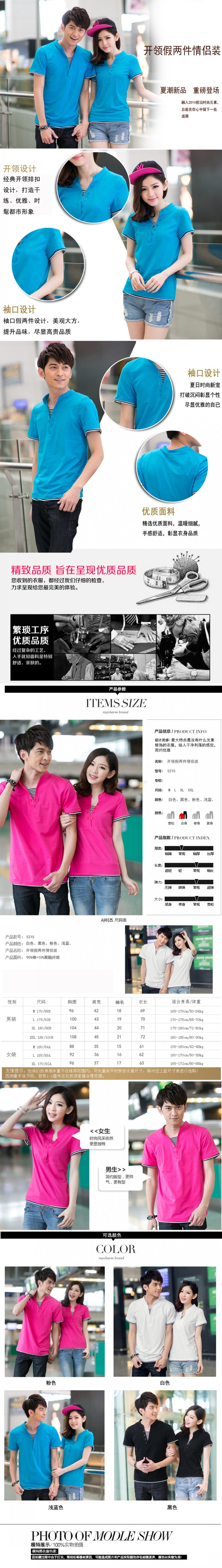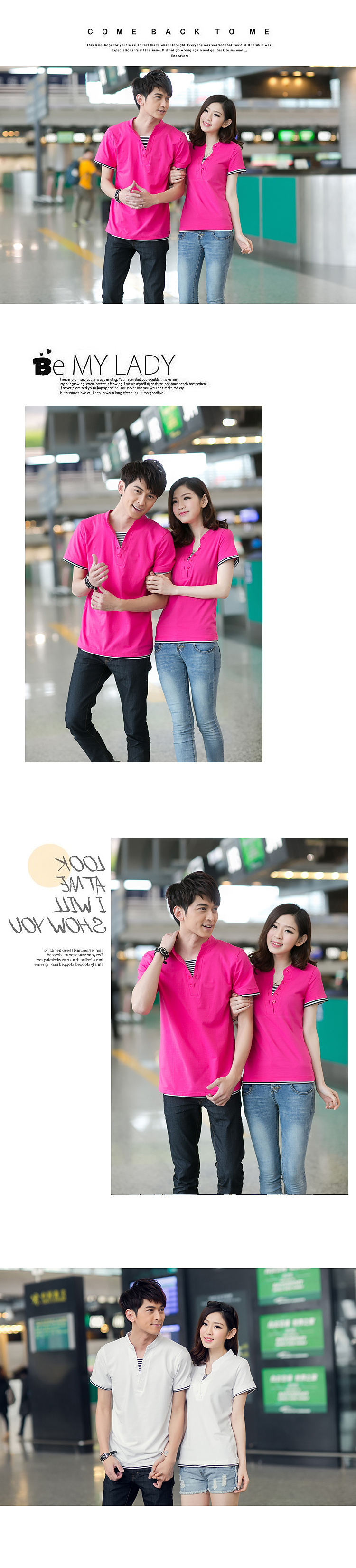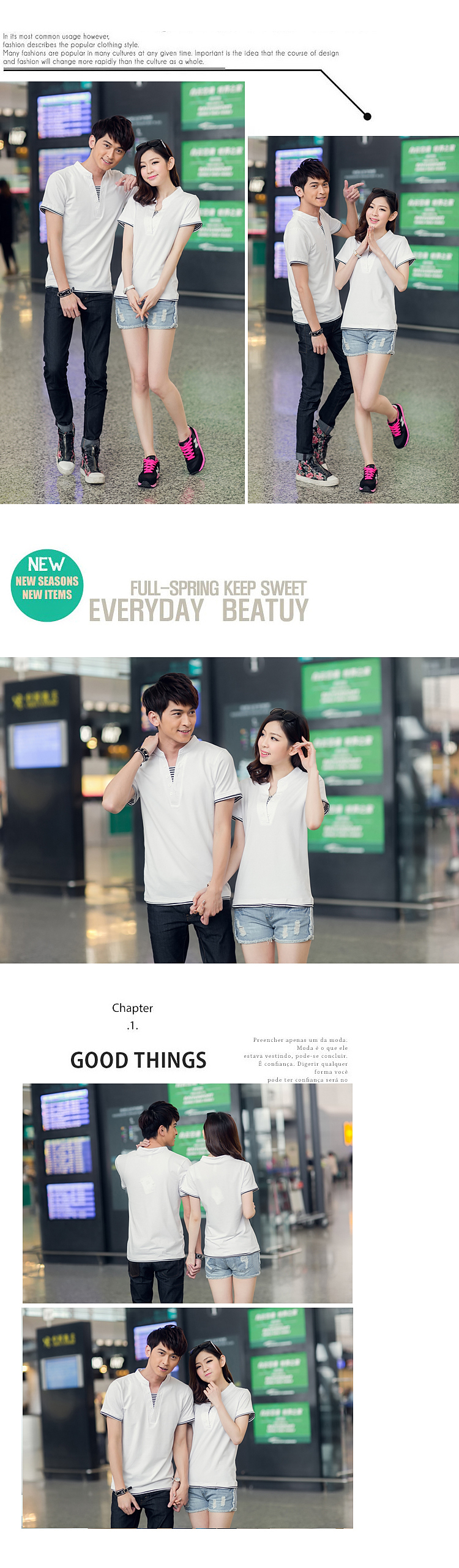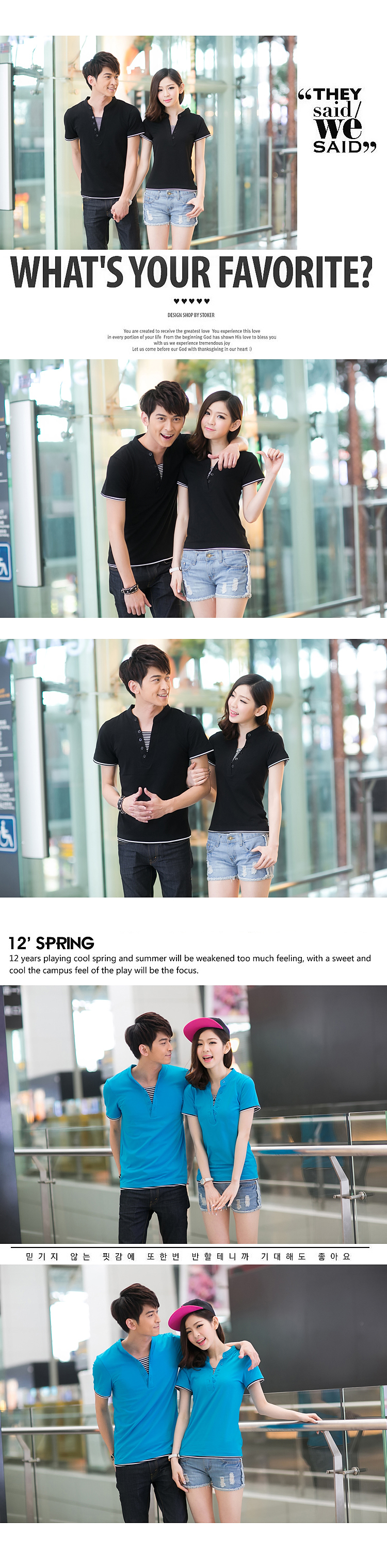 5215 情侣夏装 立领假二件情侣装 学生班服