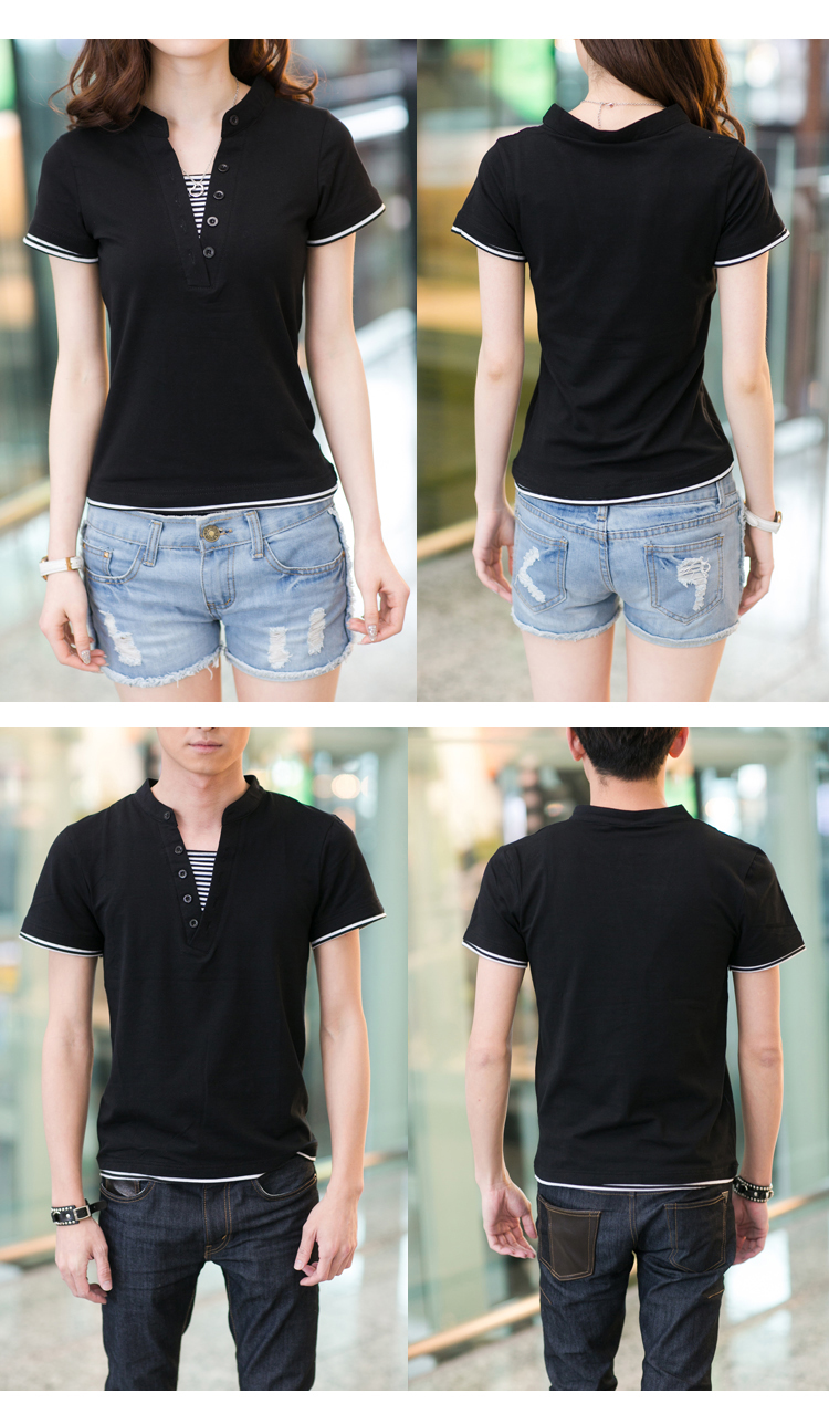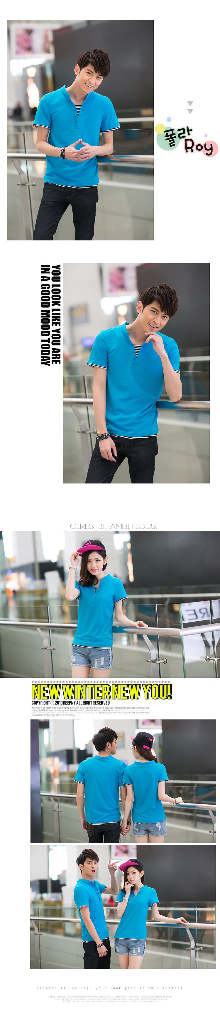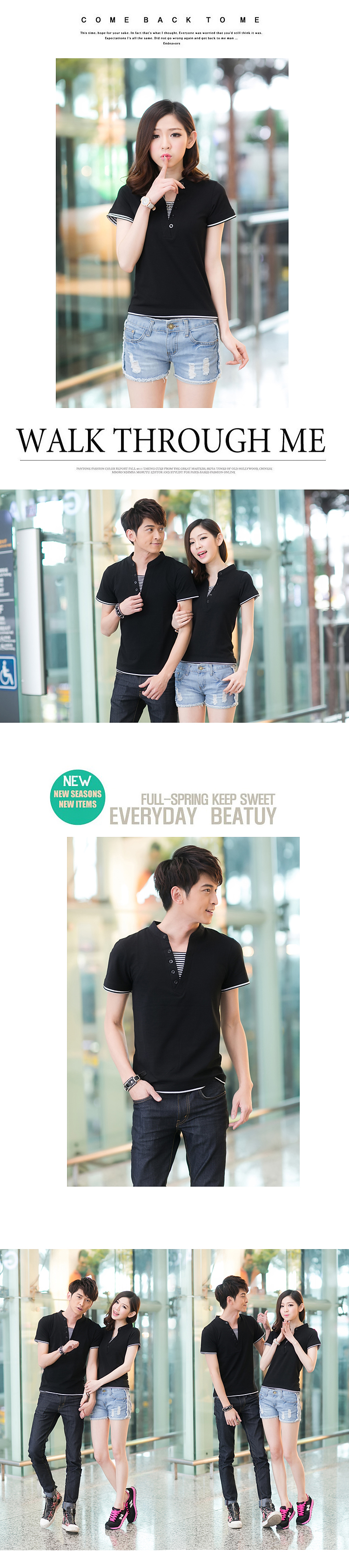 5215 情侣夏装 立领假二件情侣装 学生班服
