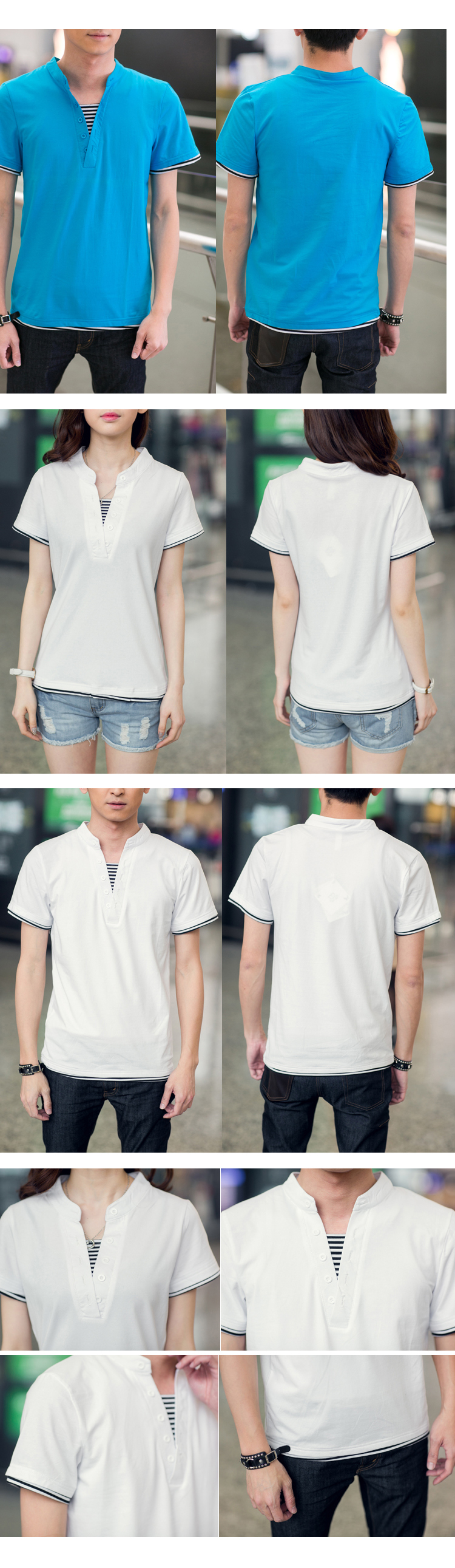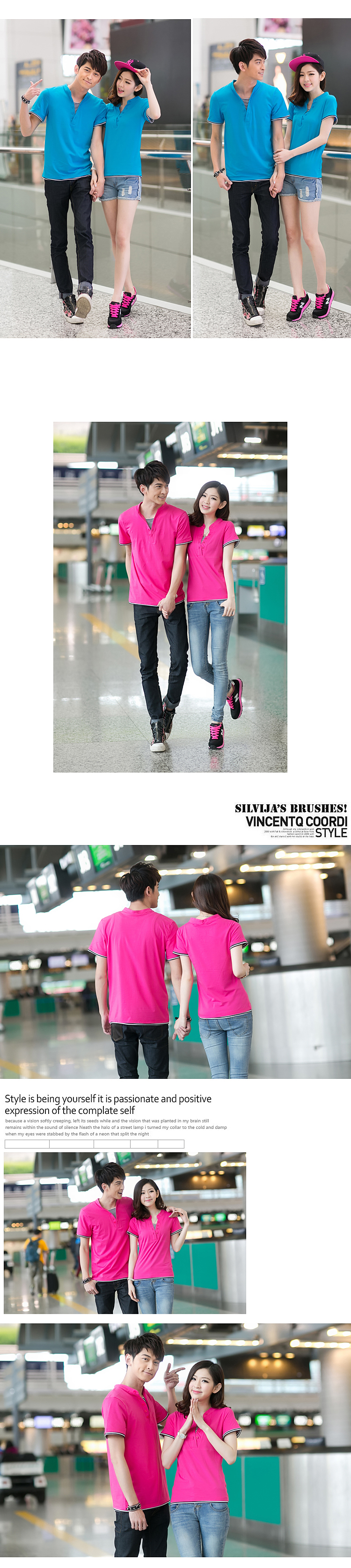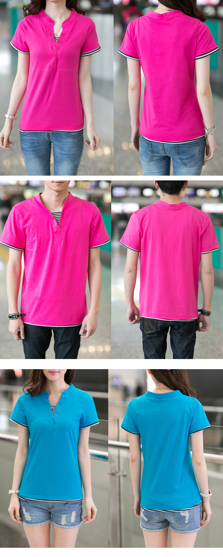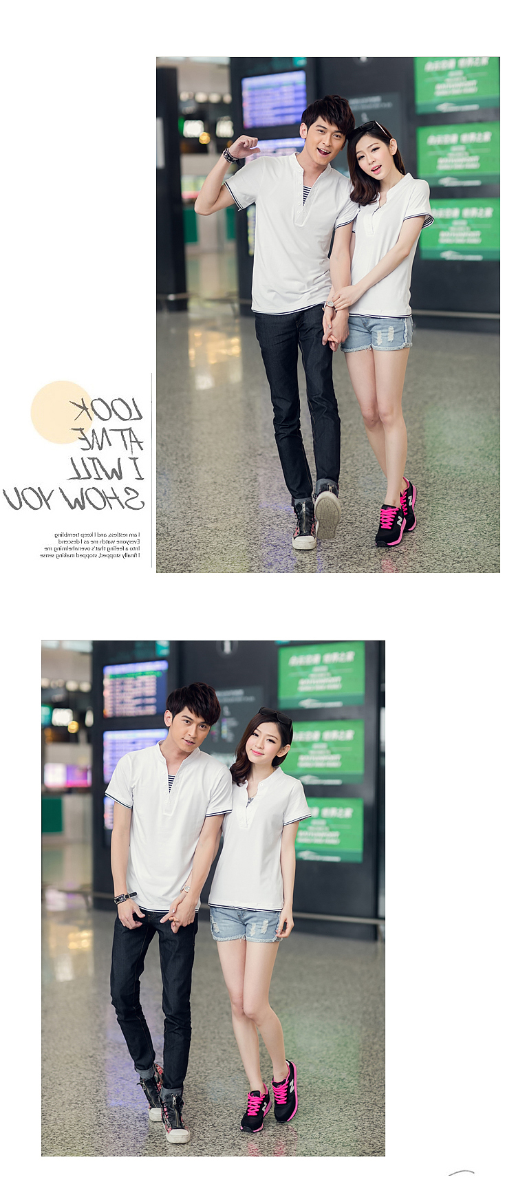 5215 情侣夏装 立领假二件情侣装 学生班服