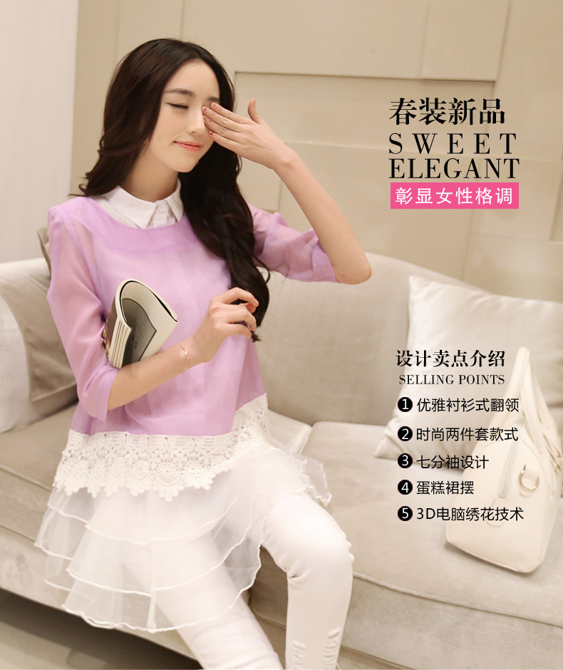 2014新款韩版甜美五分袖淑女蓬蓬裙两件套打底连衣裙