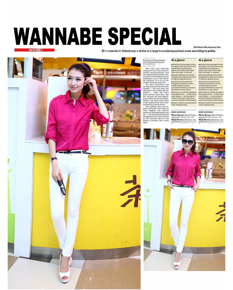 模特实拍1395#女长袖2014新款春装职业装上衣糖果色韩版潮女衬衫