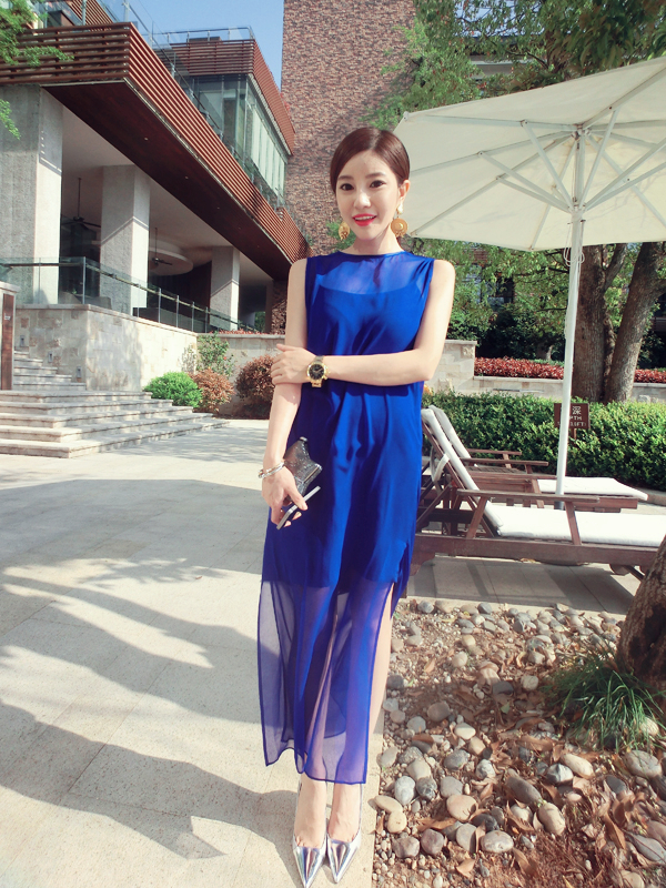 6087春夏 高端独家定制专柜同款真丝纺纱两件套连衣裙长裙