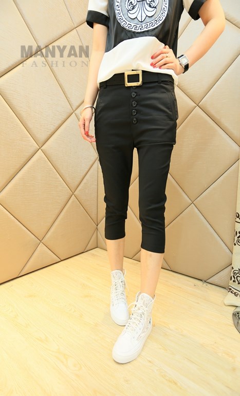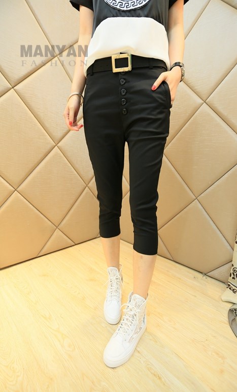 6079新款女装韩版 时尚纽扣显瘦哈伦裤 休闲七分裤 (不配腰带)