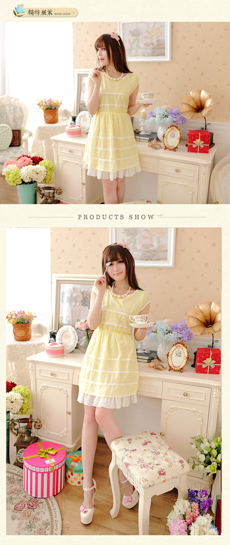 【实拍】2014夏装新款短裙A字裙大码女装短袖蕾丝连衣裙