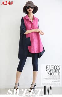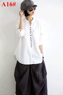 2013新夏ELEON 街头时尚 大码中袖中长款亚麻 衬衫 女 A61#