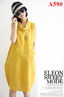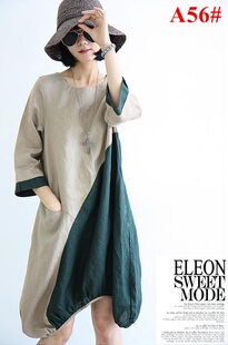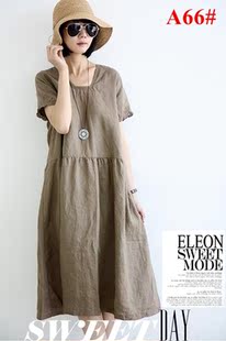 ELEON 2013百武西 文艺范 亚麻长款连衣裙 A66#