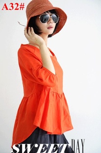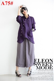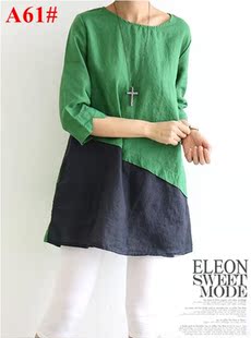 ELEON 2013新百武西文艺范 时尚大码七分袖中长款亚麻 衬衫女A51#