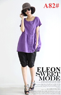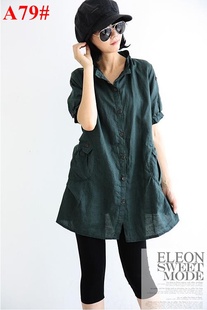ELEON 2013 街头时尚 大码短袖中长款亚麻 衬衫 女 A65#
