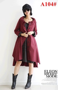 ELEON 2013秋 韩版 文艺范 亚麻 灯笼式亚麻连帽风衣 外套 A101#