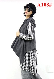 ELEON 2013秋装新款韩版 文艺范黑白格棉麻连衣裙 外套 A108#