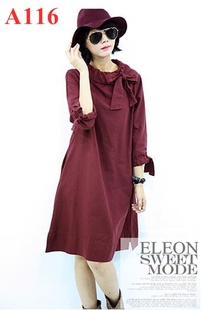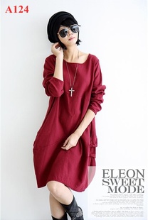 ELEON 2013秋新韩版 文艺范百搭全棉长袖连衣裙 外套 A124#