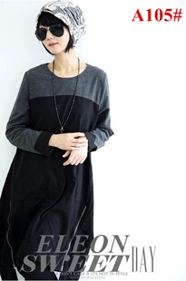 ELEON 2013秋装新款文艺范拼色长袖 连衣裙A105#