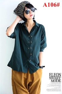 ELEON 2013秋 韩版 文艺范 亚麻 多排扣长袖衬衫 A106#