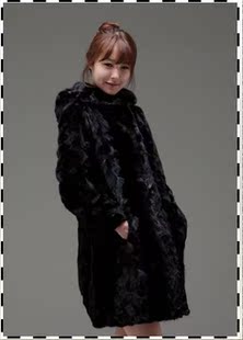 ELEON 2013年秋冬新 韩版 进口提花獭兔毛皮草连帽风衣 A131#