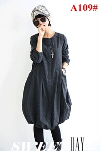 ELEON 2013秋装新款韩版 文艺范棉麻杭秀连衣裙 外套 A109#