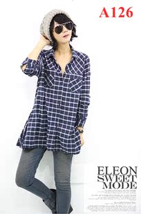 ELEON 2013秋 韩版 文艺范 格子秀 格子长袖衬衫 外套 A126#