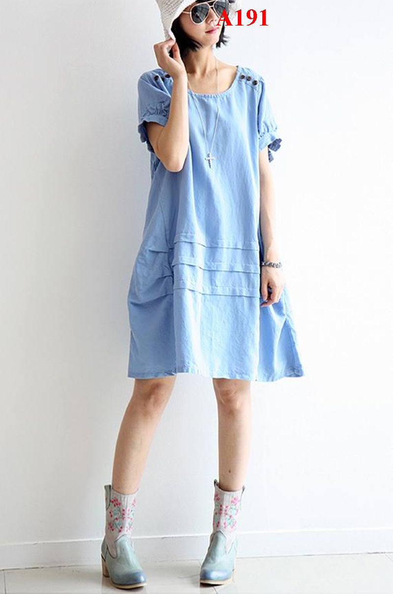 ELEON2014最新韩版 亚麻 短袖 连衣裙A191#