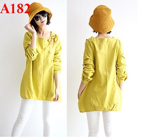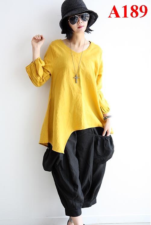 ELEON 2014夏不规则纯色 亚麻 长袖套头衬衫 A189#