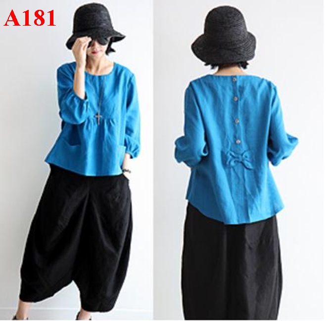 ELEON 2014最新韩版宽松大码休闲套头 亚麻 衬衫A181#